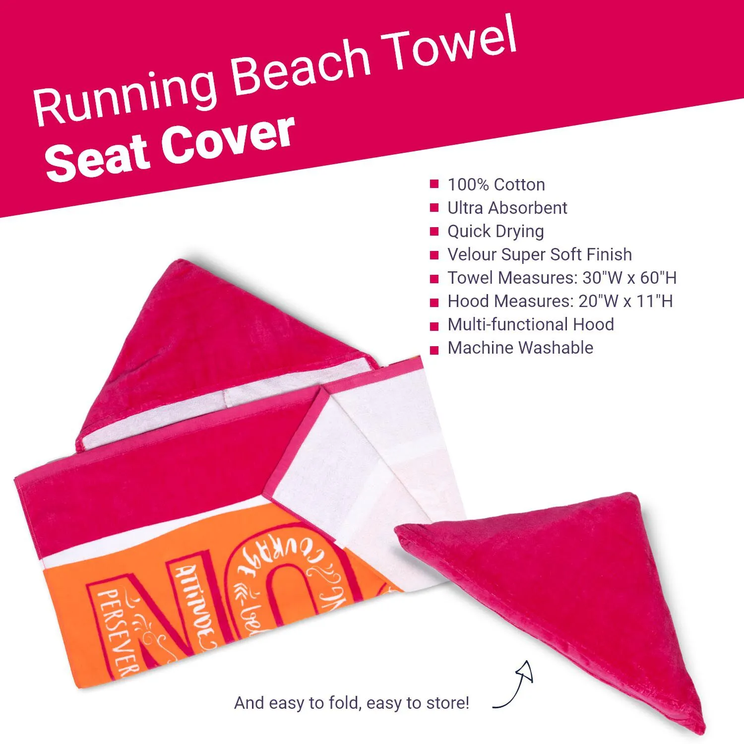 Make a statement while having fun in the sun with our running hooded beach towel. The “Run With Inspiration” towel is quick drying, ultra absorbent, and super soft. It is great for the home, after a sweaty run, sunny days at the beach, or lounging at the pool. This versatile hooded beach towel can be used as a car seat after a run or swim, a beach blanket, or even a bathrobe. A perfect gift to avid runners who love to take risks. Our towels are fun and functional!