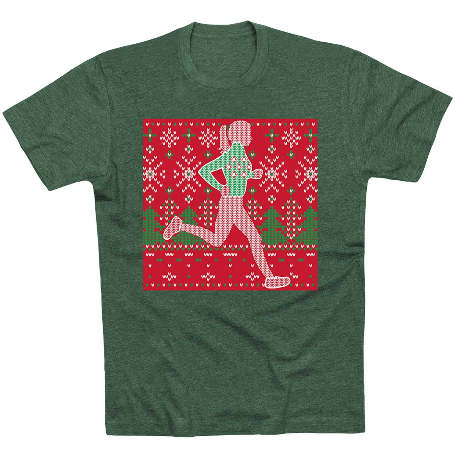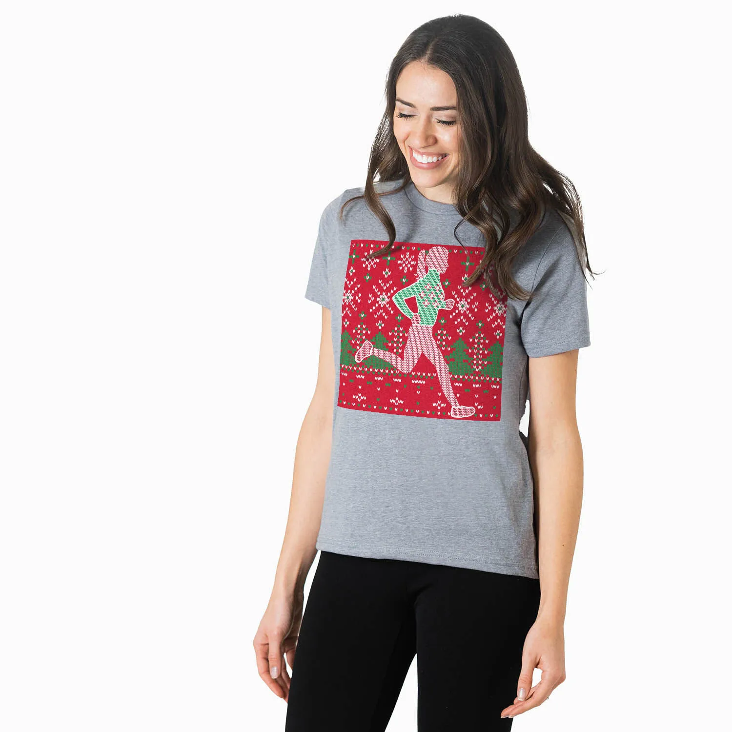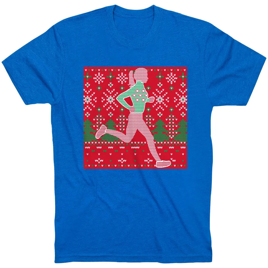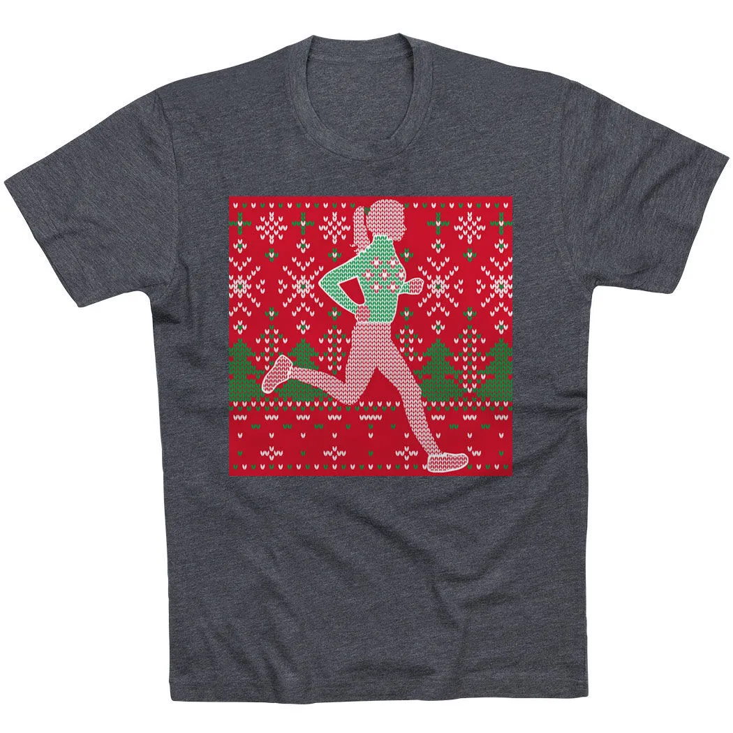 Show off your runner girl pride in our short sleeve tee featuring our exclusive Christmas Sweater design. The tee is made from soft, lightweight, and slightly heathered material. Our crewneck short sleeve tee has a relaxed, unisex fit that looks great when paired with any choice of athletic or everyday bottoms. This stylish short sleeve tee is perfect for Christmas, everyday wear, and an ideal running gift for any occasion.