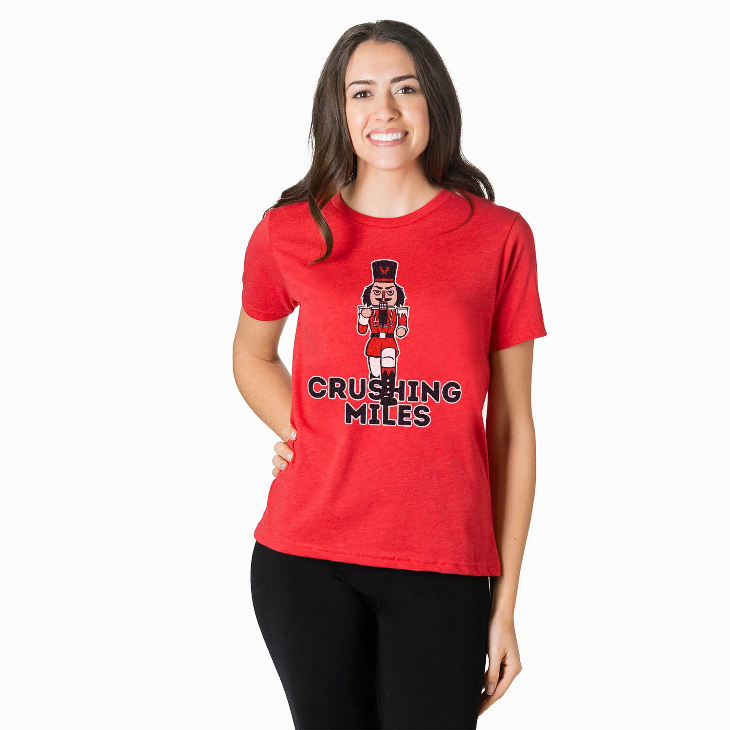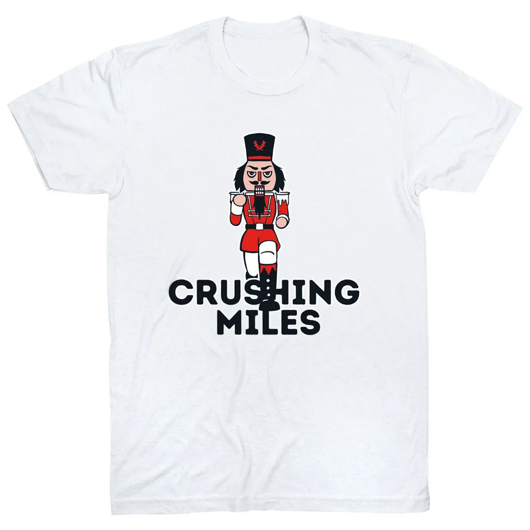 Show off your Christmas spirit in our short sleeve tee featuring our exclusive Crushing Miles design. The tee is made from soft, lightweight, and slightly heathered material. Our crewneck short sleeve tee has a relaxed, unisex fit that looks great when paired with any choice of athletic or everyday bottoms. This stylish short sleeve tee is perfect for the Holidays, everyday wear, and an ideal running gift for any occasion. Now, go and crush those miles.