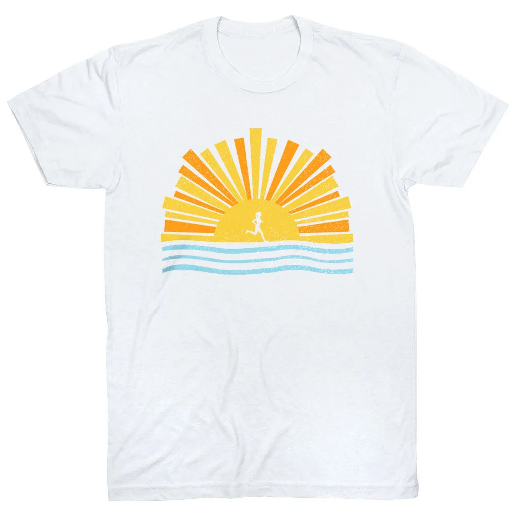 Show off your runner pride in our short sleeve tee featuring a one-of-a-kind Here Comes The Sun design. The tee is made from soft, lightweight, and slightly heathered material. Our crewneck short sleeve tee has a relaxed, unisex fit that looks great when paired with any choice of athletic or everyday bottoms. This stylish short sleeve tee is perfect for everyday wear and an ideal running gift for any occasion. Enjoy your sunset runs in the most comfortable tee for runners.
