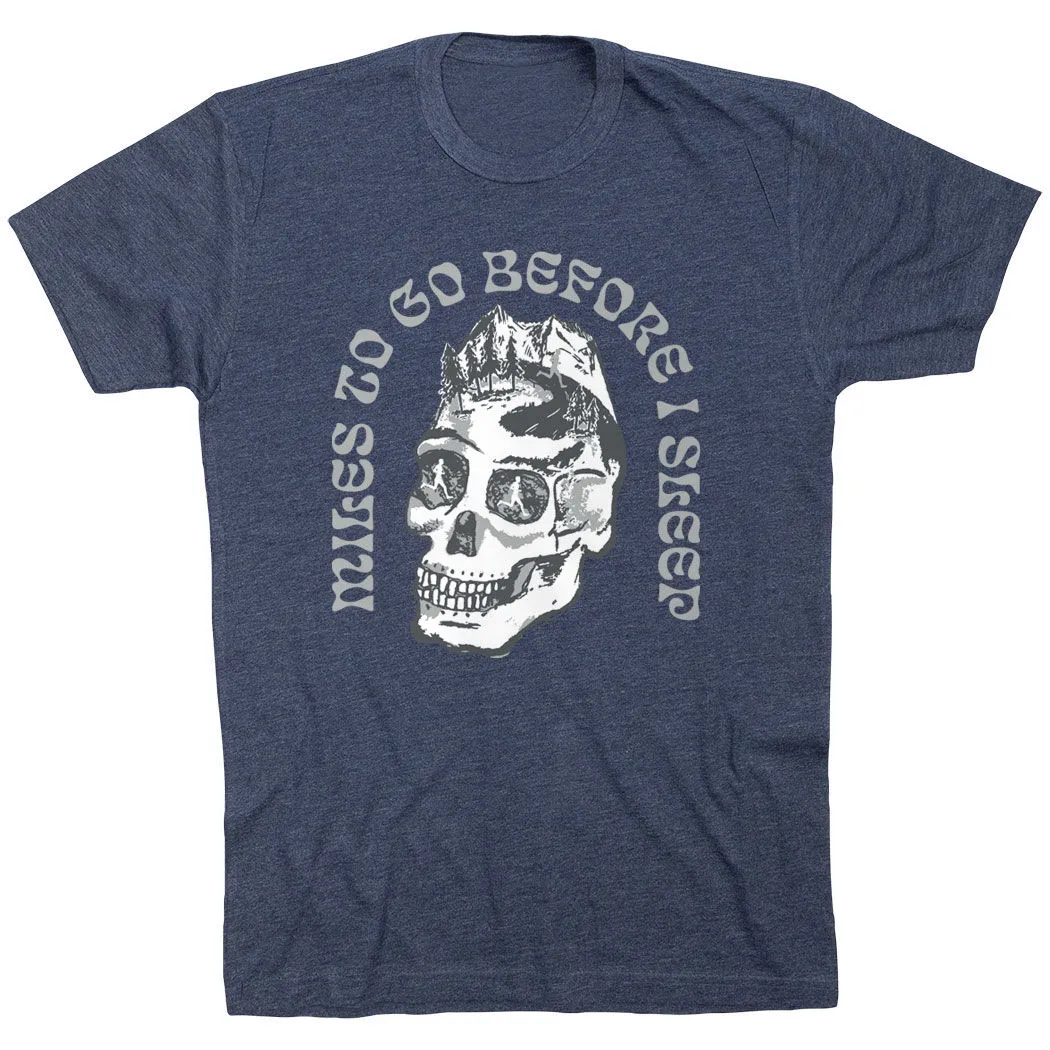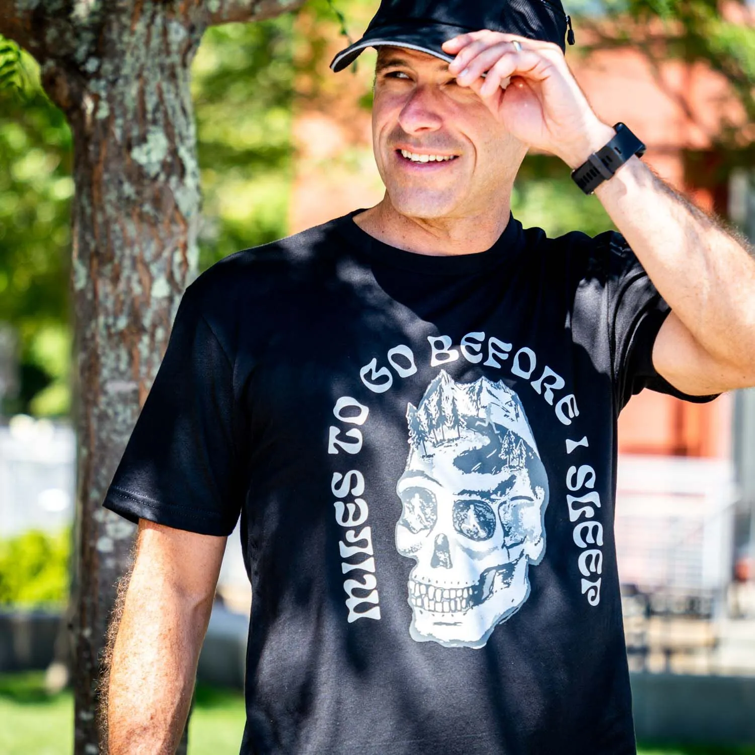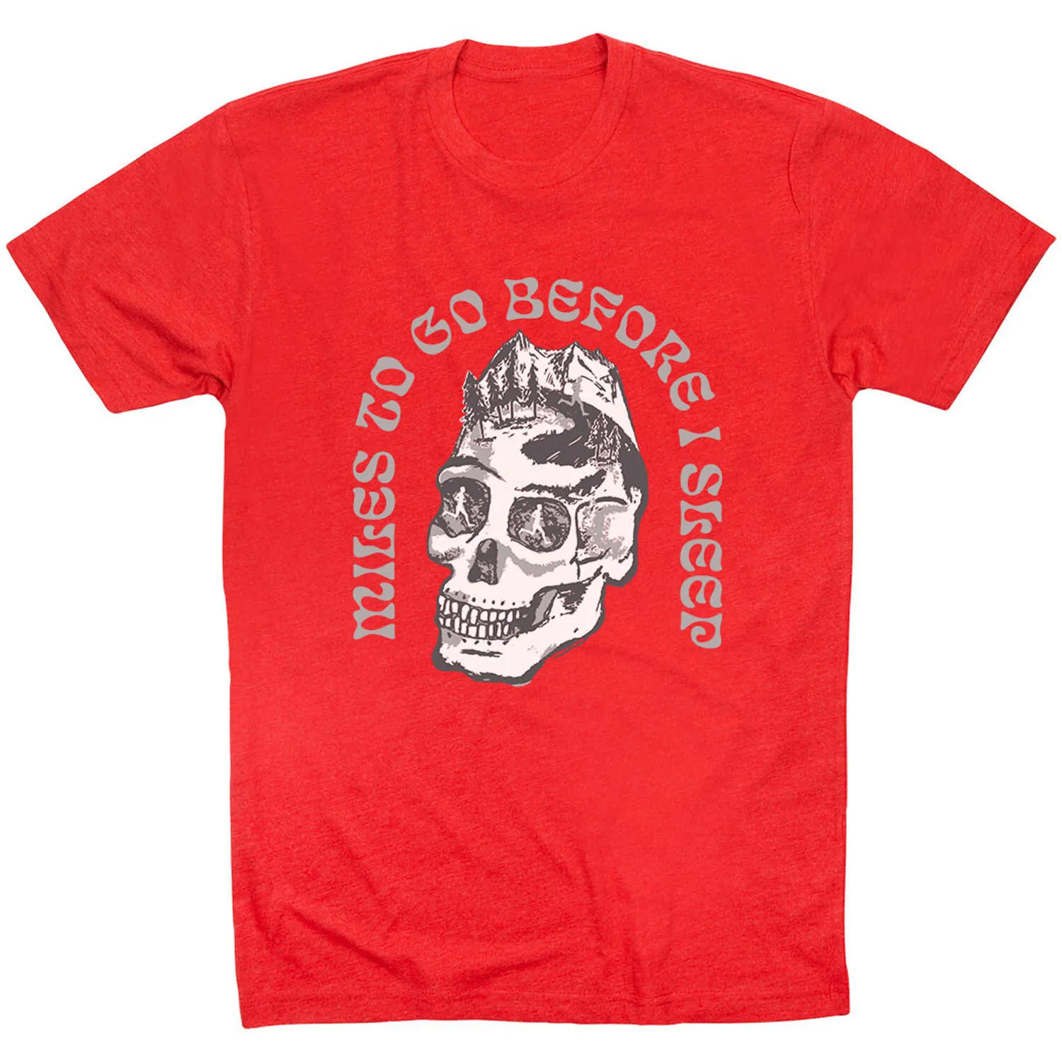 Show off your runner pride in our short sleeve tee featuring our exclusive Miles To Go Before I Sleep Skull design. The tee is made from soft, lightweight, and slightly heathered material. Our crewneck short sleeve tee has a relaxed, unisex fit that looks great when paired with any choice of athletic or everyday bottoms. This stylish short sleeve tee is perfect for everyday wear and an ideal running gift for any occasion.