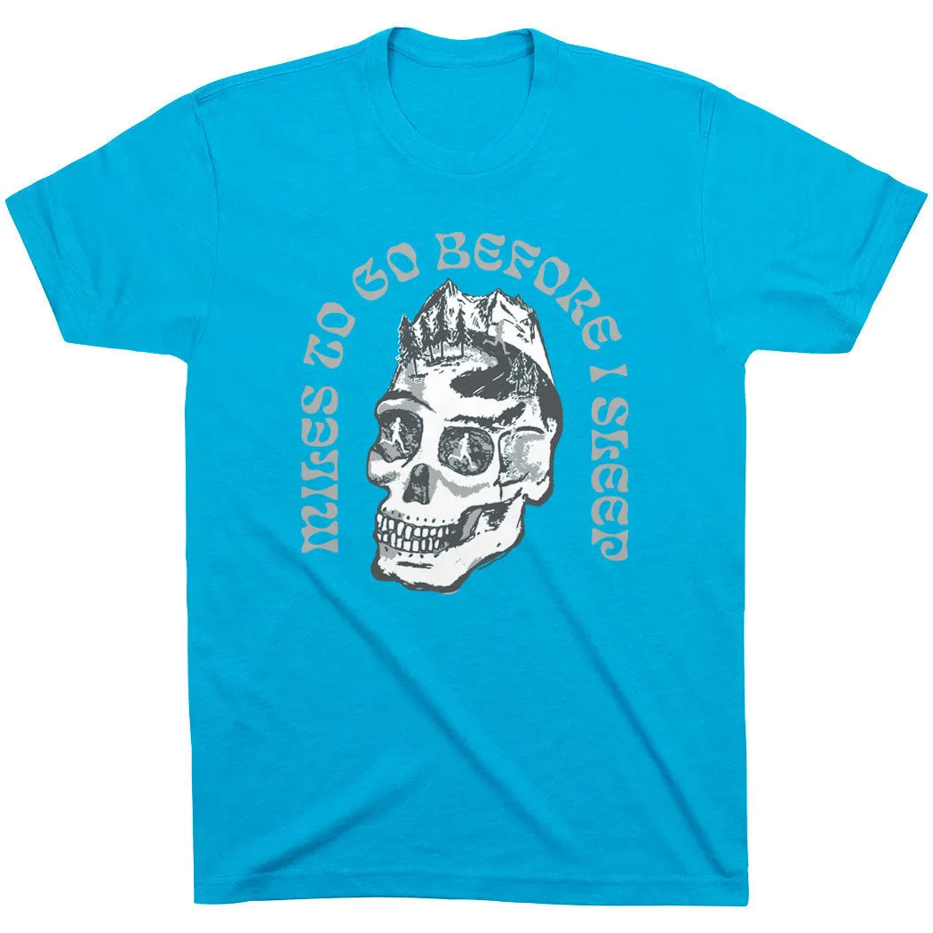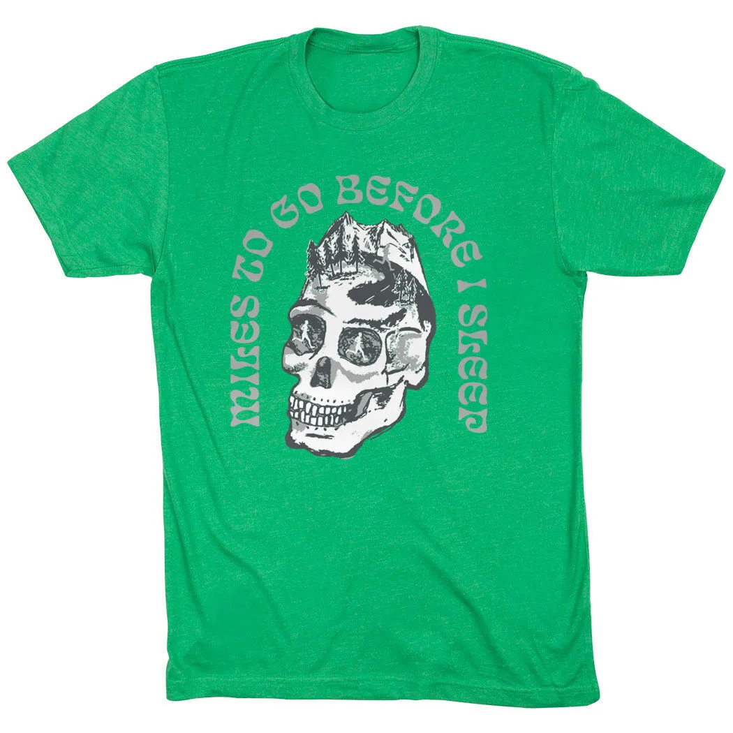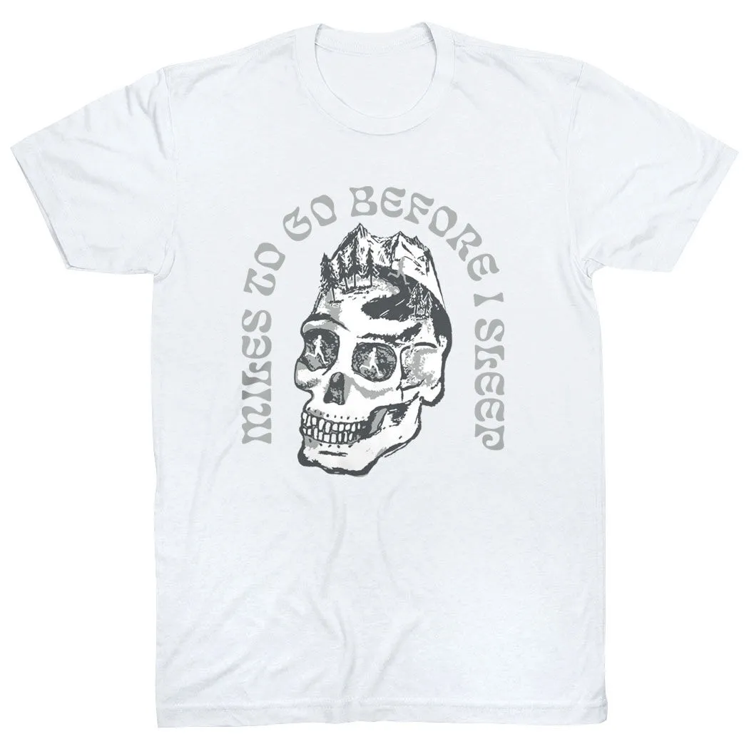 Show off your runner pride in our short sleeve tee featuring our exclusive Miles To Go Before I Sleep Skull design. The tee is made from soft, lightweight, and slightly heathered material. Our crewneck short sleeve tee has a relaxed, unisex fit that looks great when paired with any choice of athletic or everyday bottoms. This stylish short sleeve tee is perfect for everyday wear and an ideal running gift for any occasion.
