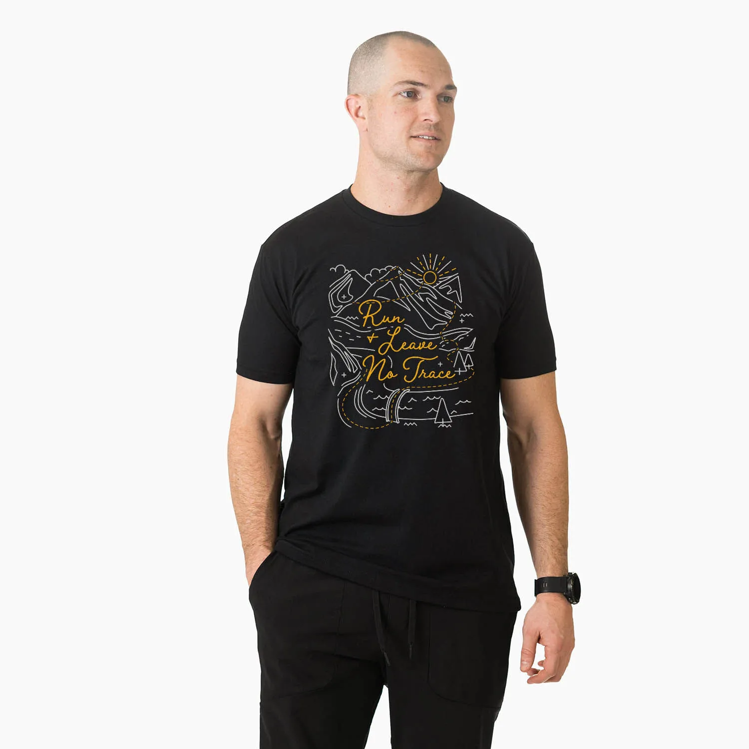 Run and leave no trace in our short sleeve tee featuring a one-of-a-kind running design. The tee is made from soft, lightweight, and slightly heathered material. Our crewneck short sleeve tee has a relaxed, unisex fit that looks great when paired with any choice of athletic or everyday bottoms. This stylish short sleeve tee is perfect for everyday wear and an ideal running gift for any occasion.