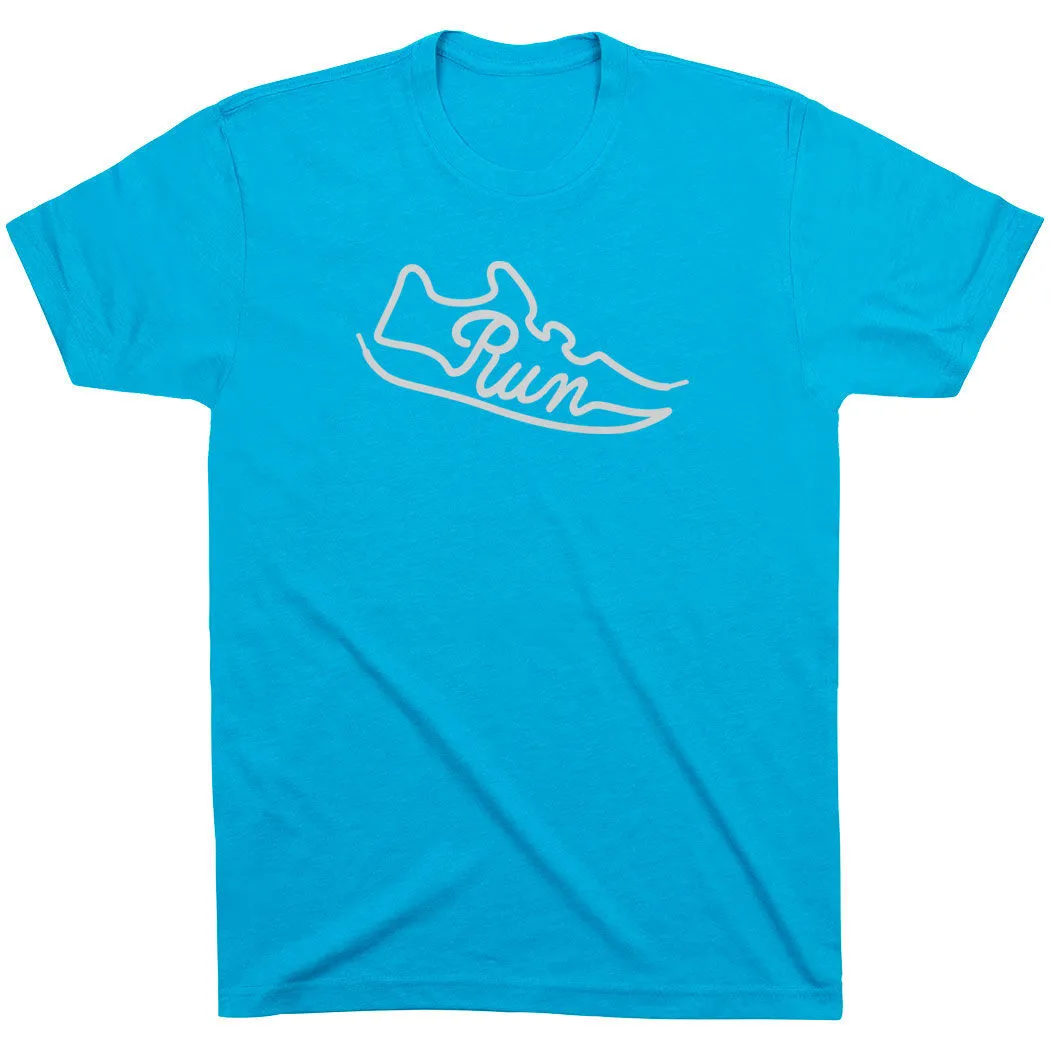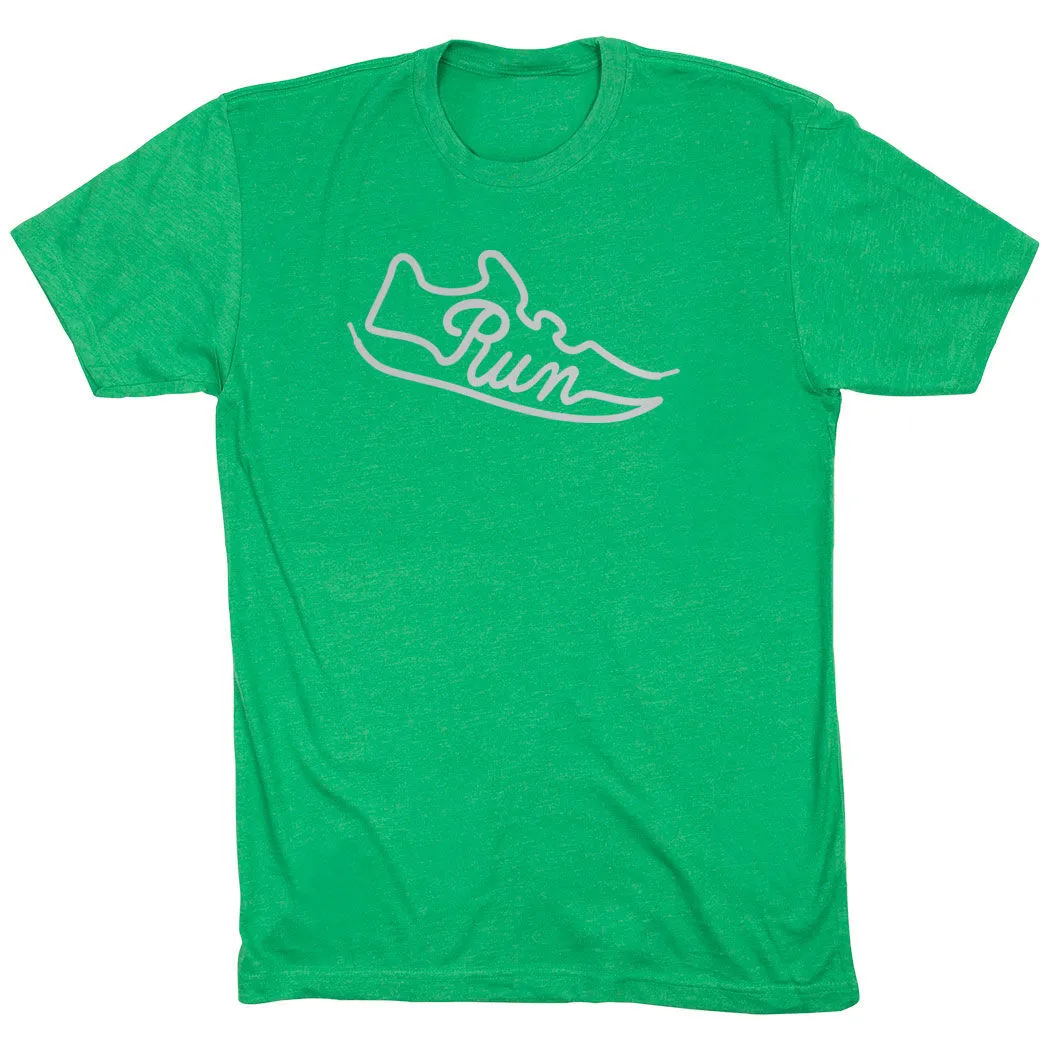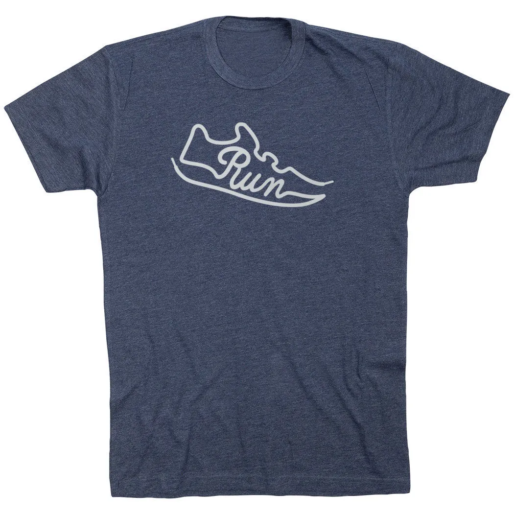 Show off your running pride in our short sleeve tee featuring a one-of-a-kind Run Shoe design. The tee is made from soft, lightweight, and slightly heathered material. Our crewneck short sleeve tee has a relaxed, unisex fit that looks great when paired with any choice of athletic or everyday bottoms. This stylish short sleeve tee is perfect for everyday wear and an ideal running gift for any occasion.