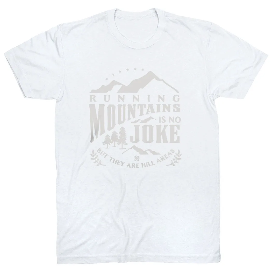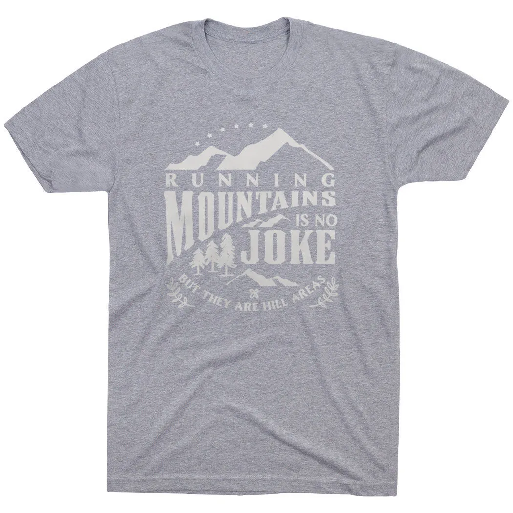 Running mountains is no joke – don’t be afraid to discover those hill[areas] in our short sleeve tee. The tee is made from soft, lightweight, and slightly heathered material. Our crewneck short sleeve tee has a relaxed, unisex fit that looks great when paired with any choice of athletic or everyday bottoms. This stylish short sleeve tee is perfect for everyday wear and an ideal running gift for any occasion.
