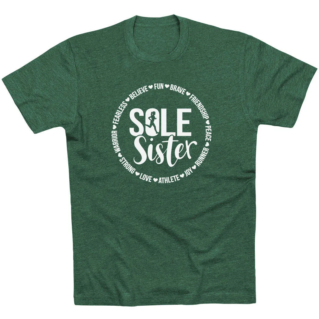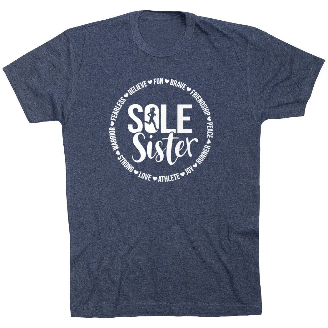 Show off your sole sister pride in our short sleeve tee. The tee is made from soft, lightweight, and slightly heathered material. Our crewneck short sleeve tee has a relaxed fit that looks great when paired with any choice of athletic or everyday bottoms. This stylish short sleeve tee is perfect for everyday wear and an ideal running gift for any occasion. Grab your best friend and run those miles together in this stylish top.
