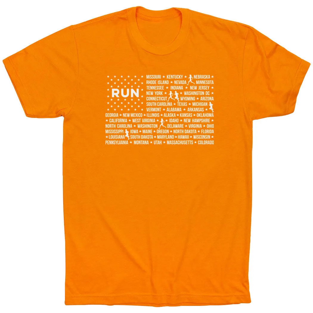 Show off your American pride in our short sleeve tee featuring a one-of-a-kind Patriotic design inspired by running. The tee is made from soft, lightweight, and slightly heathered material. Our crewneck short sleeve tee has a relaxed, unisex fit that looks great when paired with any choice of athletic or everyday bottoms. This stylish short sleeve tee is perfect for everyday wear and an ideal running gift for any occasion.