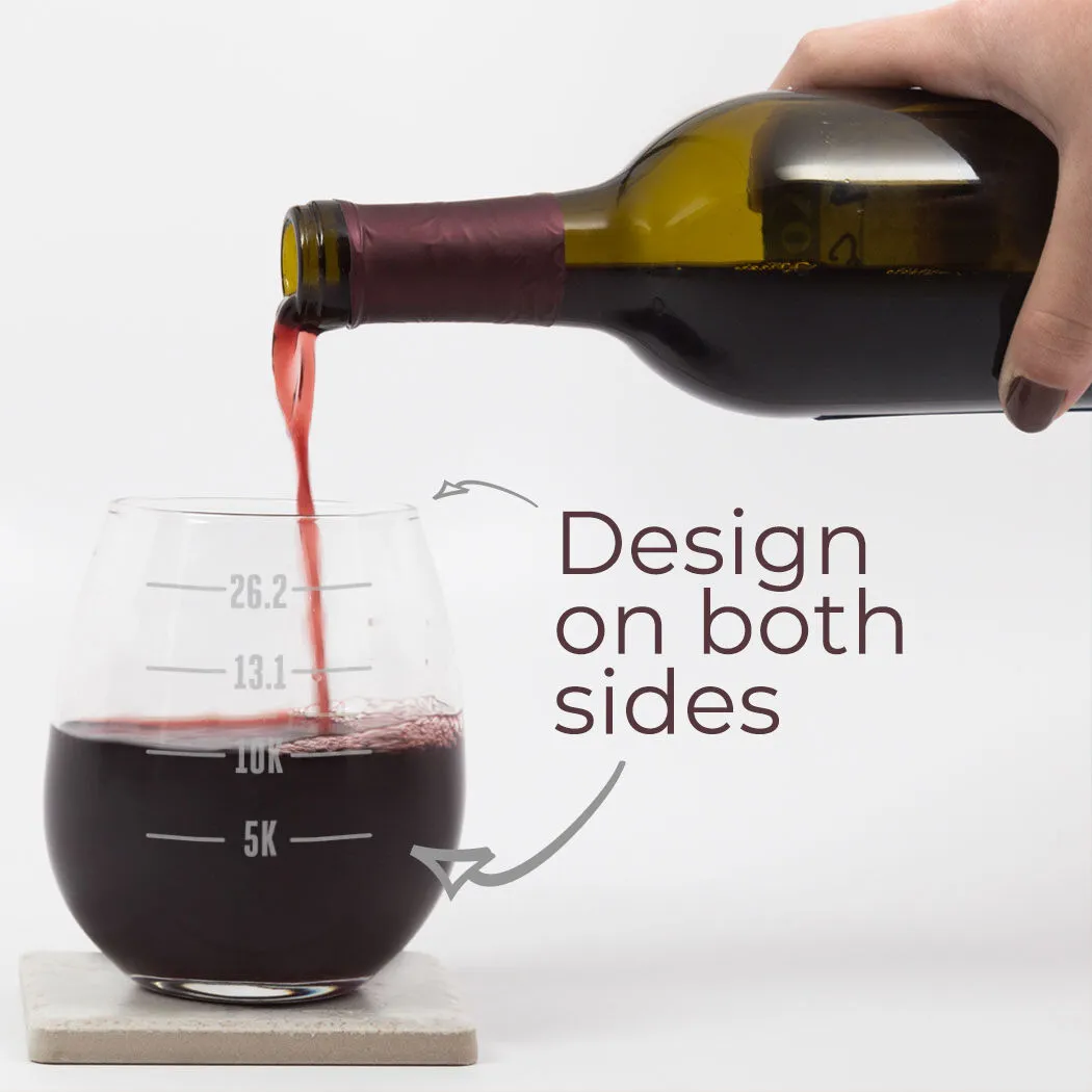 5K, 10K, 13.1, 26.2 – the longer your run, the more wine to enjoy! This engraved wine glass has one of our exclusive and popular running designs which makes a perfect gift for a runner and a great addition to a home bar.