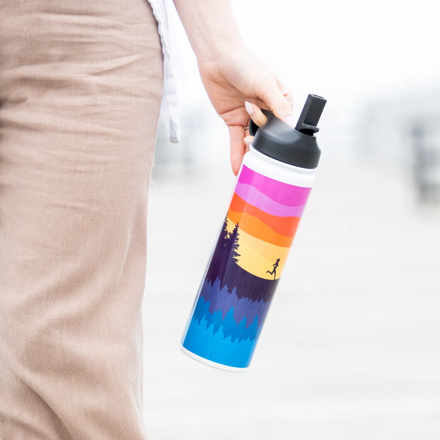 - EXCLUSIVE DESIGN: Stainless steel water bottle features an exclusive running design