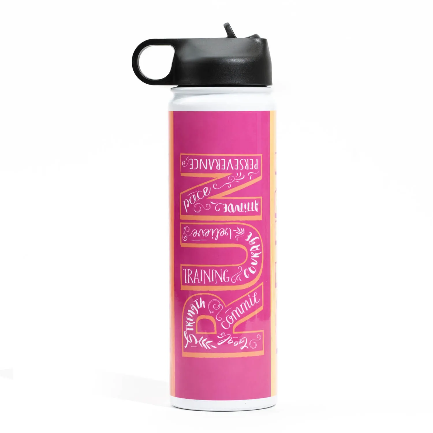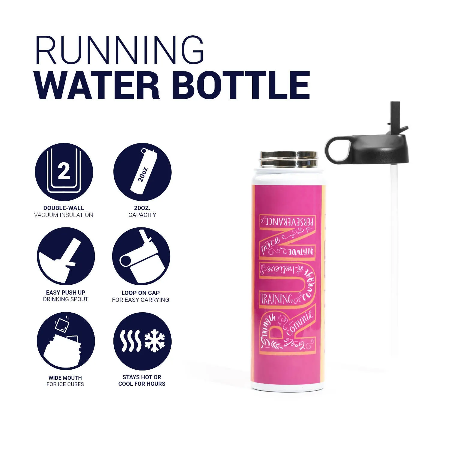 Show off your runner pride with our RunTechnology® water bottle featuring one-of-a-kind Run With Inspiration design. Our 20 oz. double vacuum insulated tumbler is the perfect choice to retain freshness and keep any beverage at its optimal temperature for an extended period of time. The stainless steel water bottle offers an easy push up drinking spout with straw, wide mouth for ice cubes, as well as a loop on the cap for easy carrying. This unique water bottle makes for a great gift for a runner who is always on-the-go.