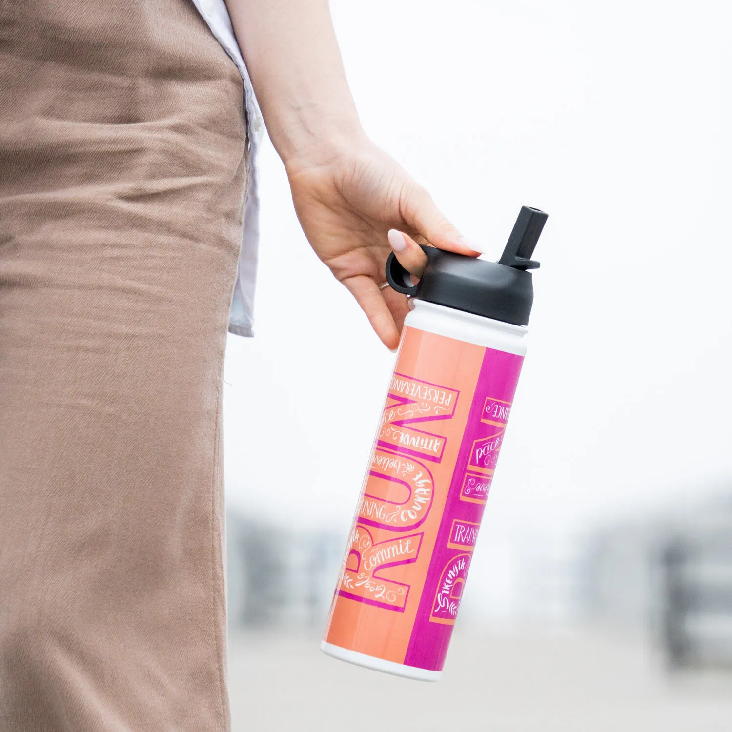 - EXCLUSIVE DESIGN: Stainless steel water bottle features an exclusive running design