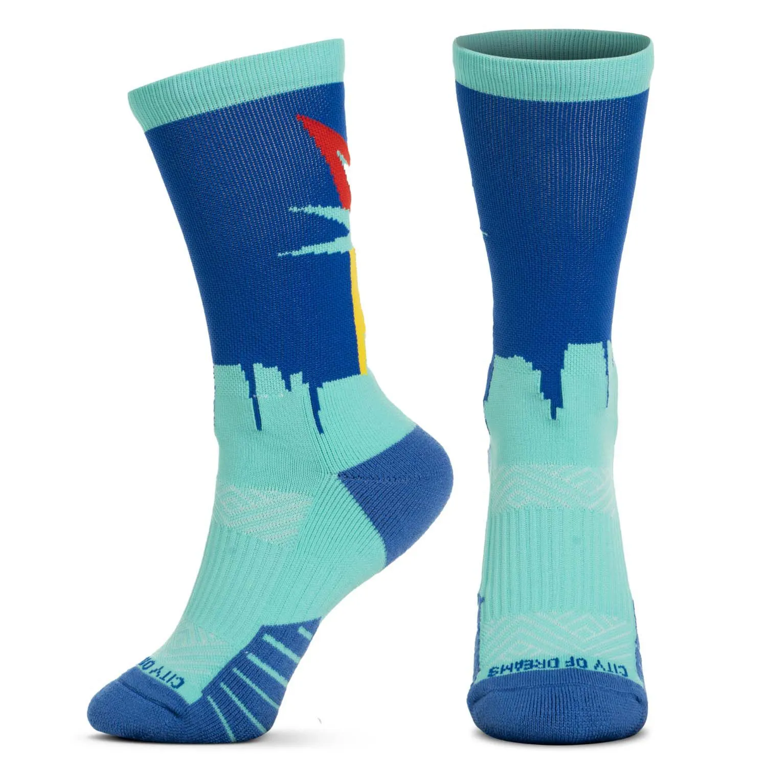 Whether you are preparing or participating in a big race, our City Of Dreams Socrates® mid-calf performance socks will keep you comfortable and motivated. These moisture-wicking crew socks are sure to keep a runner’s feet comfortable and dry with the RunTechnology® merino wool and polyester yarn blend. The cushioned footbed absorbs impact, limits foot fatigue, and prevents blisters. Its arch support system provides superior support and prevents bunching. The Socrates® mid-calf performance socks also include a motivational message making them a great gift for any occasion.