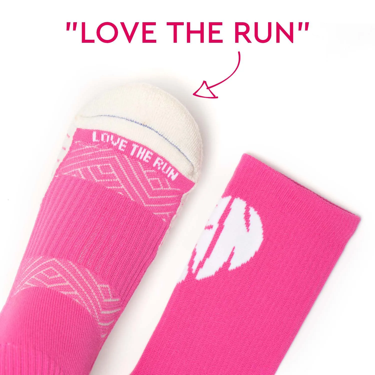 Whether you are preparing or participating in a big race, our Love The Run Socrates® mid-calf performance socks will keep you comfortable and motivated. These moisture-wicking crew socks are sure to keep a runner’s feet comfortable and dry with the RunTechnology® merino wool and polyester yarn blend. The cushioned footbed absorbs impact, limits foot fatigue, and prevents blisters. Its arch support system provides superior support and prevents bunching. The Socrates® mid-calf performance socks also include a motivational message making them a great gift for any occasion.
