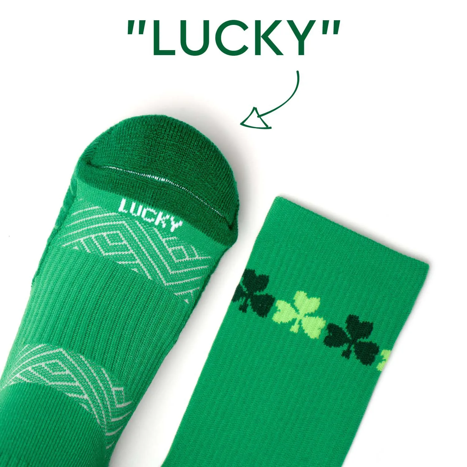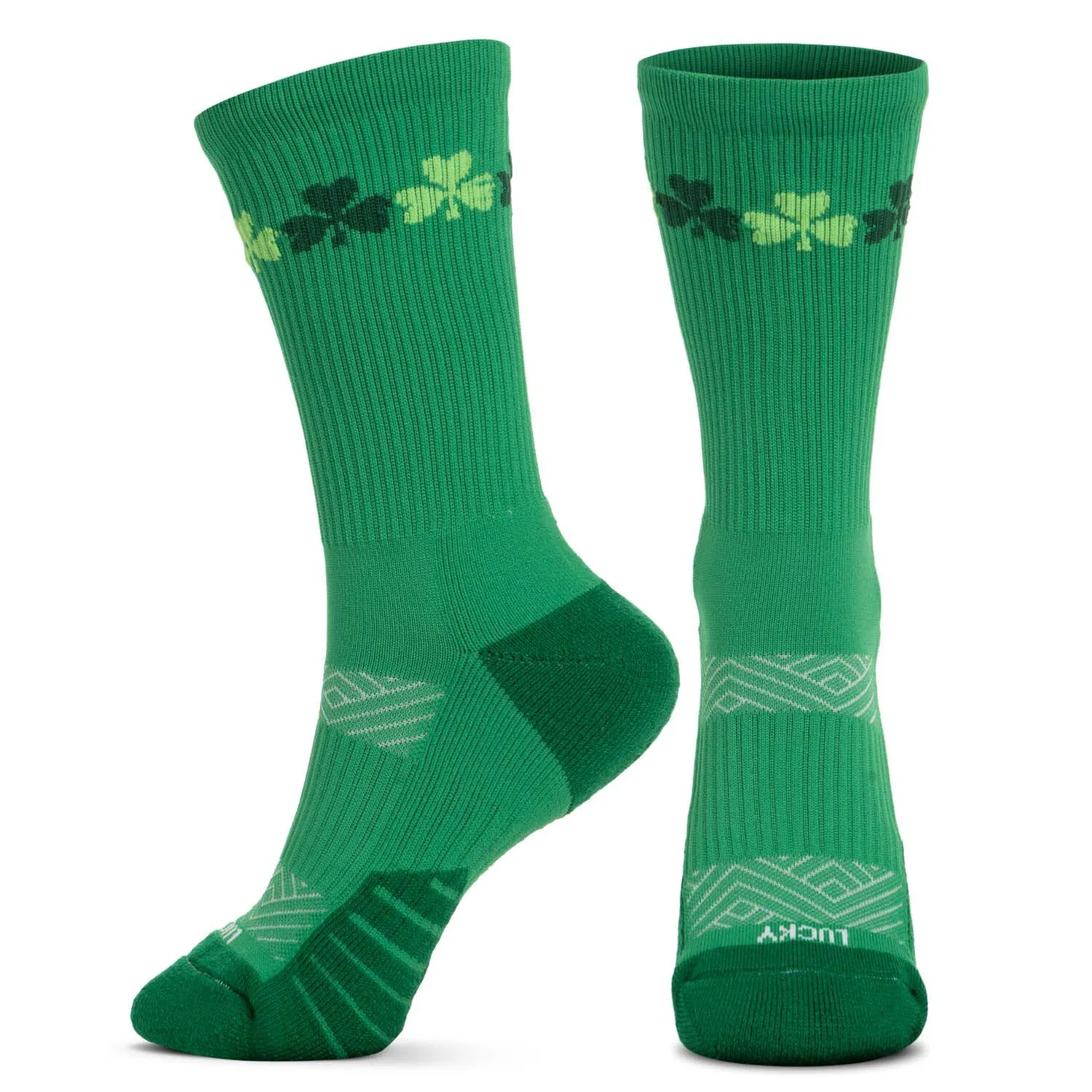 Whether you are preparing or participating in a big race, our Lucky Socrates® mid-calf performance socks will keep you comfortable and motivated. These St. Patrick’s themed moisture-wicking crew socks are sure to keep a runner’s feet comfortable and dry with the RunTechnology® merino wool and polyester yarn blend. The cushioned footbed absorbs impact, limits foot fatigue, and prevents blisters. Its arch support system provides superior support and prevents bunching. The Socrates® mid-calf performance socks also include a motivational message making them a great gift for any occasion.