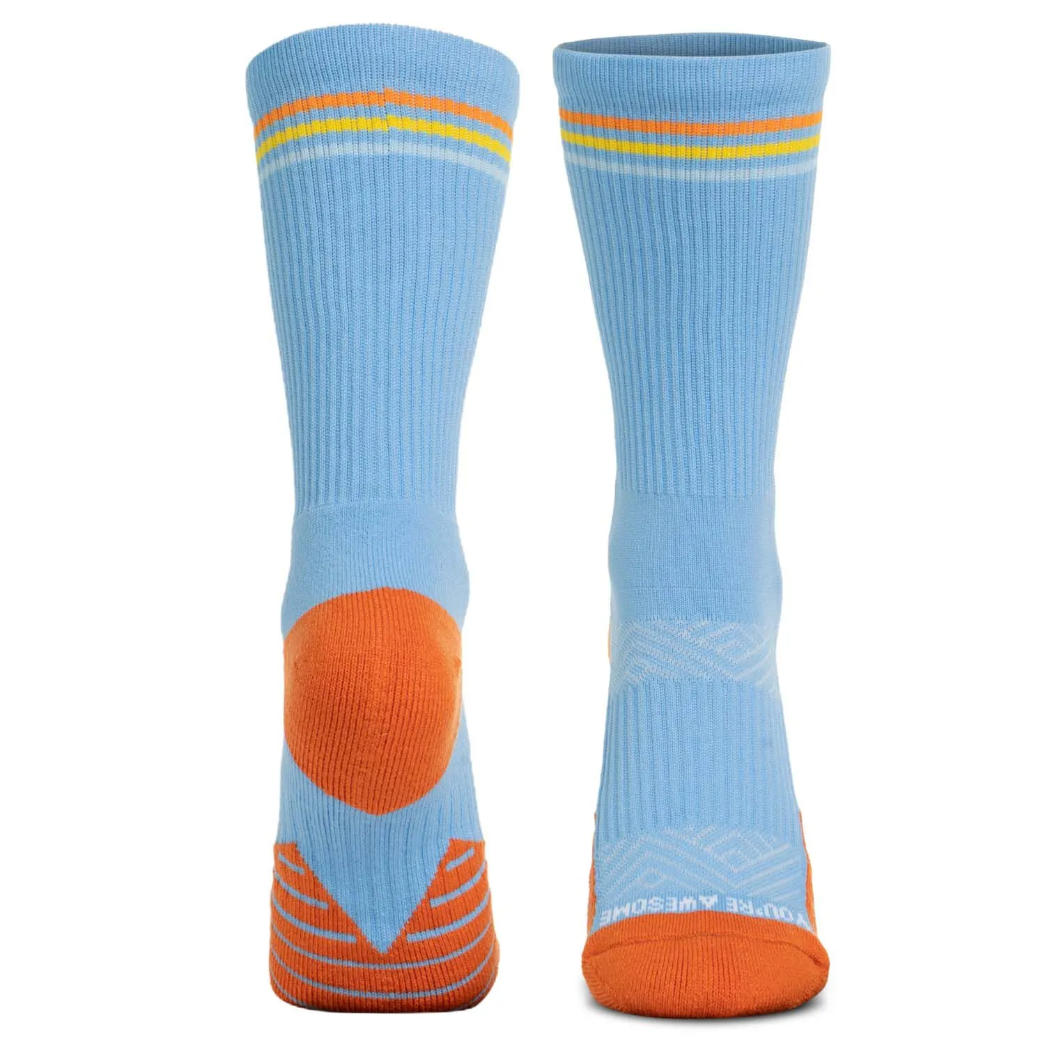Whether you are preparing or participating in a big race, our You’re Awesome Socrates® mid-calf performance socks will keep you comfortable and motivated. These moisture-wicking crew socks are sure to keep a runner’s feet comfortable and dry with the RunTechnology® merino wool and polyester yarn blend. The cushioned footbed absorbs impact, limits foot fatigue, and prevents blisters. Its arch support system provides superior support and prevents bunching. The Socrates® mid-calf performance socks also include a motivational message making them a great gift for any occasion.