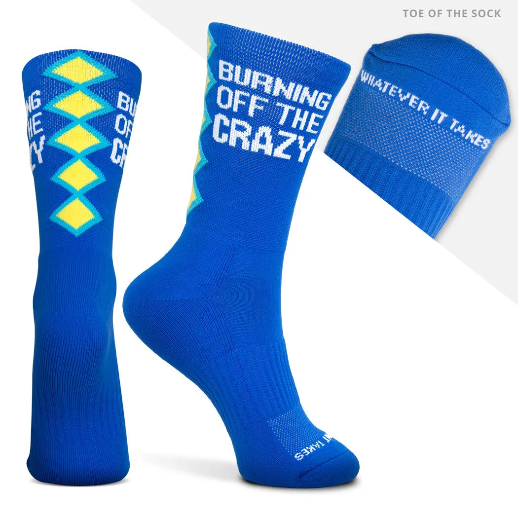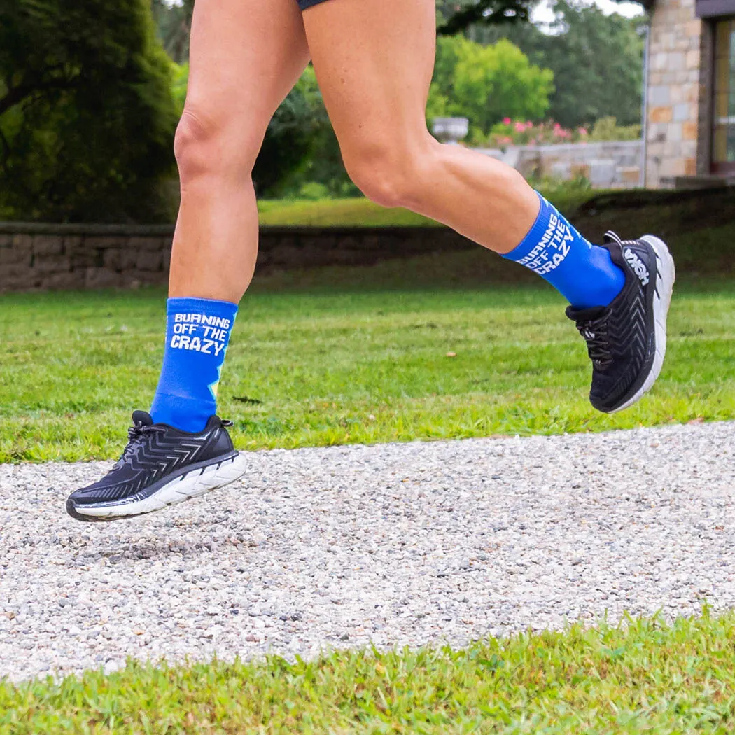 Whether you are preparing or participating in a big race, our Burning Off The Crazy Socrates® mid-calf performance socks will keep you comfortable and motivated. These moisture-wicking crew socks are sure to keep a runner’s feet comfortable and dry with the RunTechnology® merino wool and polyester yarn blend. The cushioned footbed absorbs impact, limits foot fatigue, and prevents blisters. Its arch support system provides superior support and prevents bunching. The Socrates® mid-calf performance socks also include a motivational message making them a great gift for any occasion.