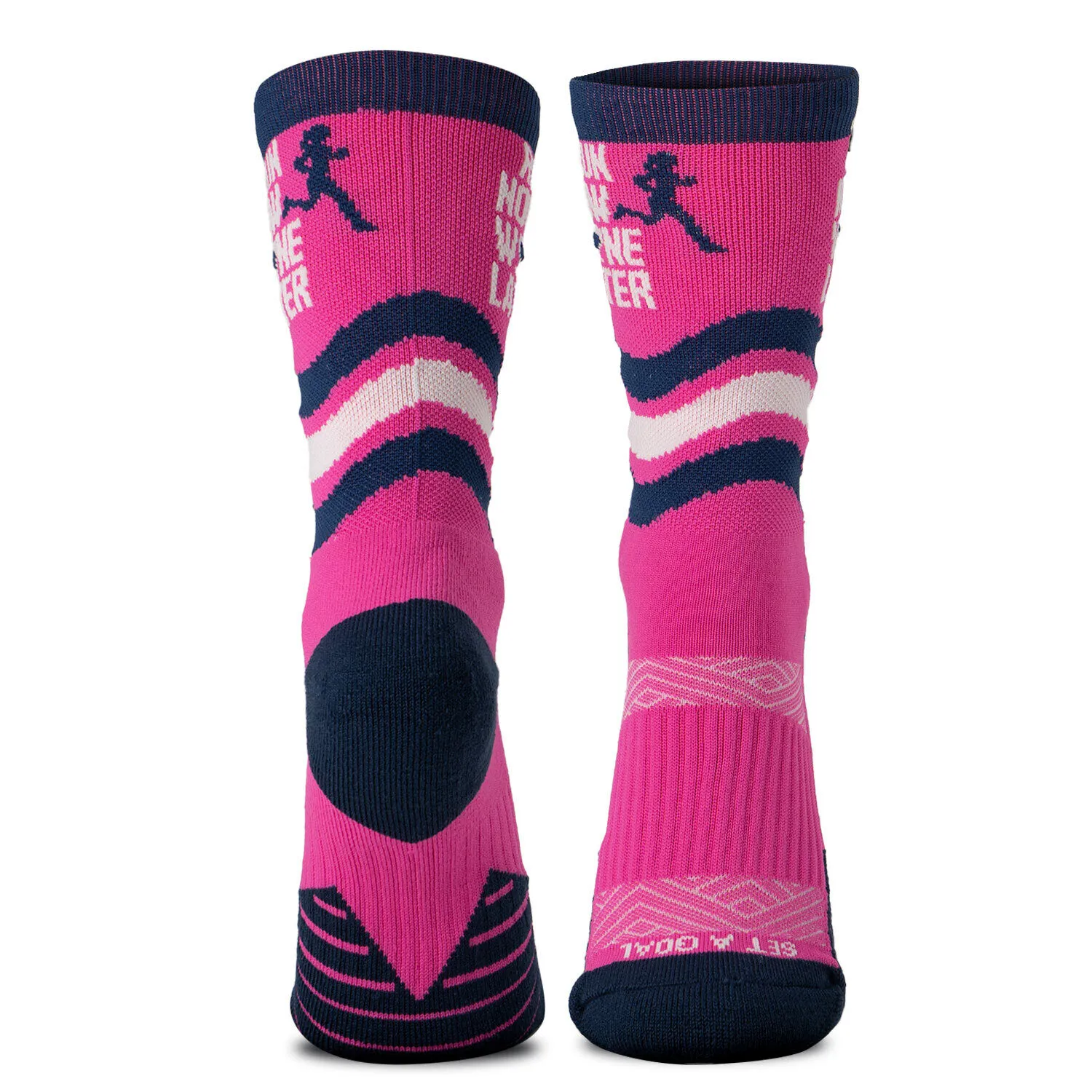 Whether you are preparing or participating in a big race, our Run Now Wine Later Socrates® mid-calf performance socks will keep you comfortable and motivated. These moisture-wicking crew socks are sure to keep a runner’s feet comfortable and dry with the RunTechnology® merino wool and polyester yarn blend. The cushioned footbed absorbs impact, limits foot fatigue, and prevents blisters. Its arch support system provides superior support and prevents bunching. The Socrates® mid-calf performance socks also include a motivational message making them a great gift for any occasion.
