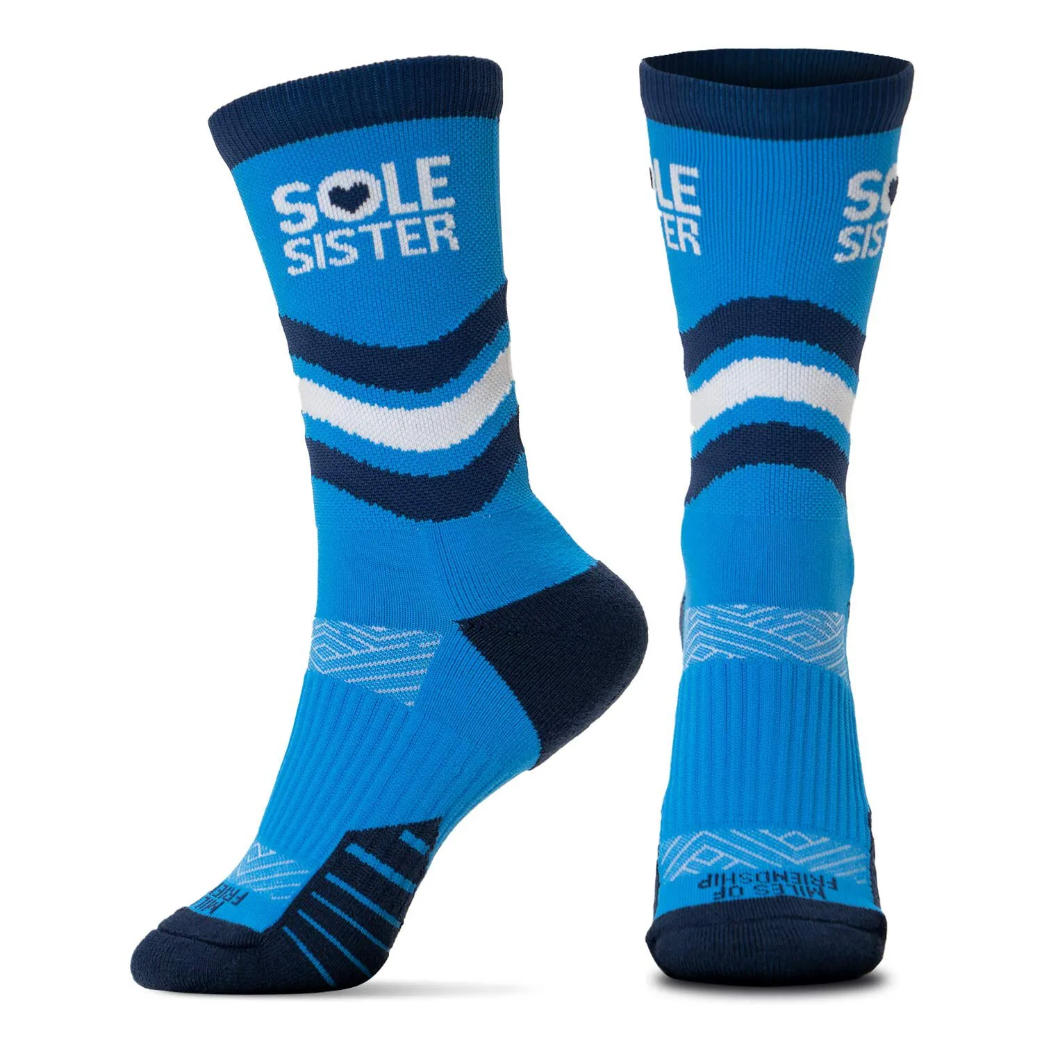 Whether you are preparing or participating in a big race, our Sole Sister Socrates® mid-calf performance socks will keep you comfortable and motivated. These moisture-wicking crew socks are sure to keep a runner’s feet comfortable and dry with the RunTechnology® merino wool and polyester yarn blend. The cushioned footbed absorbs impact, limits foot fatigue, and prevents blisters. Its arch support system provides superior support and prevents bunching. The Socrates® mid-calf performance socks also include a motivational message making them a great gift for any occasion.