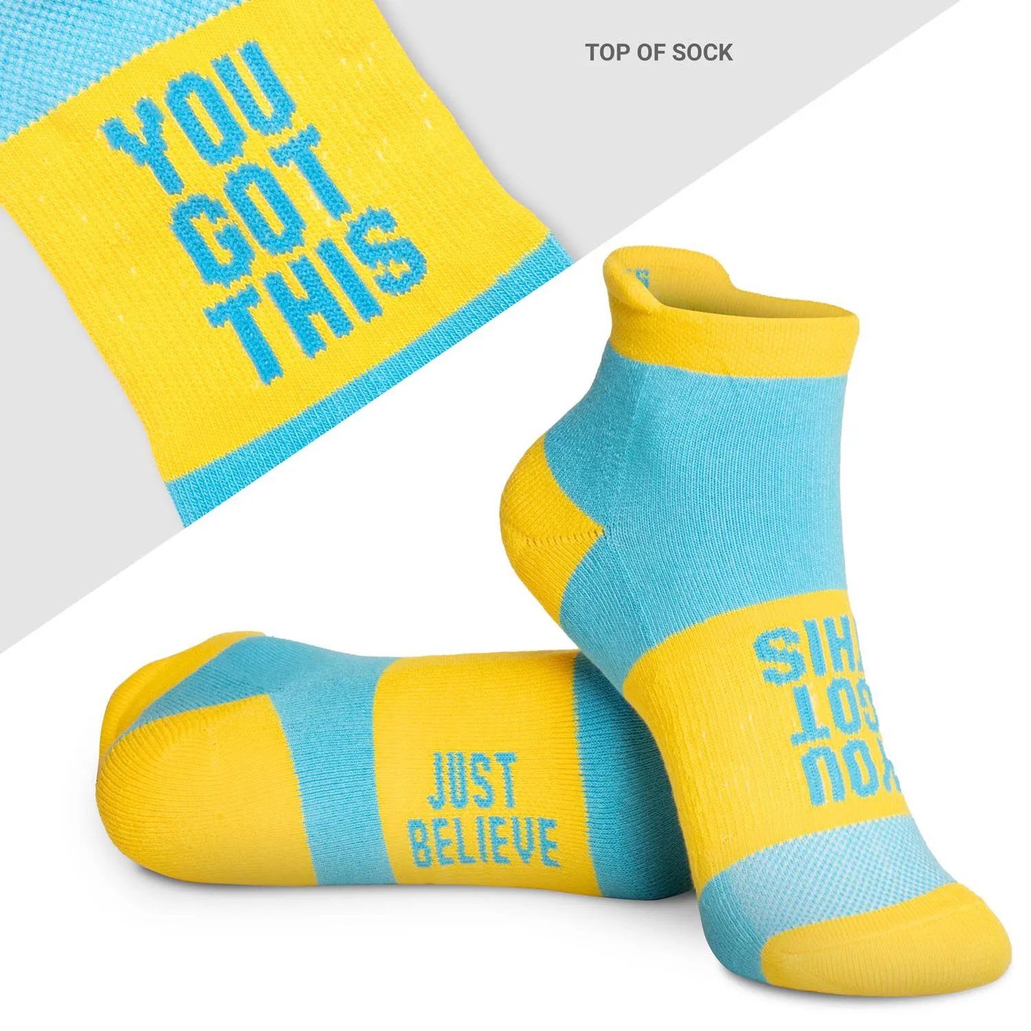 - Ultimate Comfort: Powered by motivation and wisdom, these high-quality performance inspirational ankle socks are designed for runners to receive all-day comfort. These ankle socks are equipped with a comfort footbed to help absorb the impact of daily runs and activities. Not only are these socks equipped with stay up technology but they also have an arch band to help provide arch support. Stay dry and comfortable with the COOLMAX® performance yarn blend and airflow ventilation.