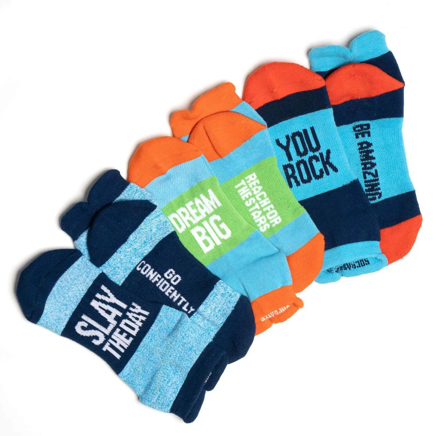 Show someone how much you love them with a set of our moisture-wicking Socrates® athletic socks. These socks have a cushioned, contoured sole and a positive, motivational message for the perfect choice of athletic socks. Celebrate all the things positive in one’s life with these soft and comfortable low-cut socks made from performance polyester, ideal for daily wear, and for those active long days. An excellent gift for any occasion, these socks are sure to be put to good use by anyone.