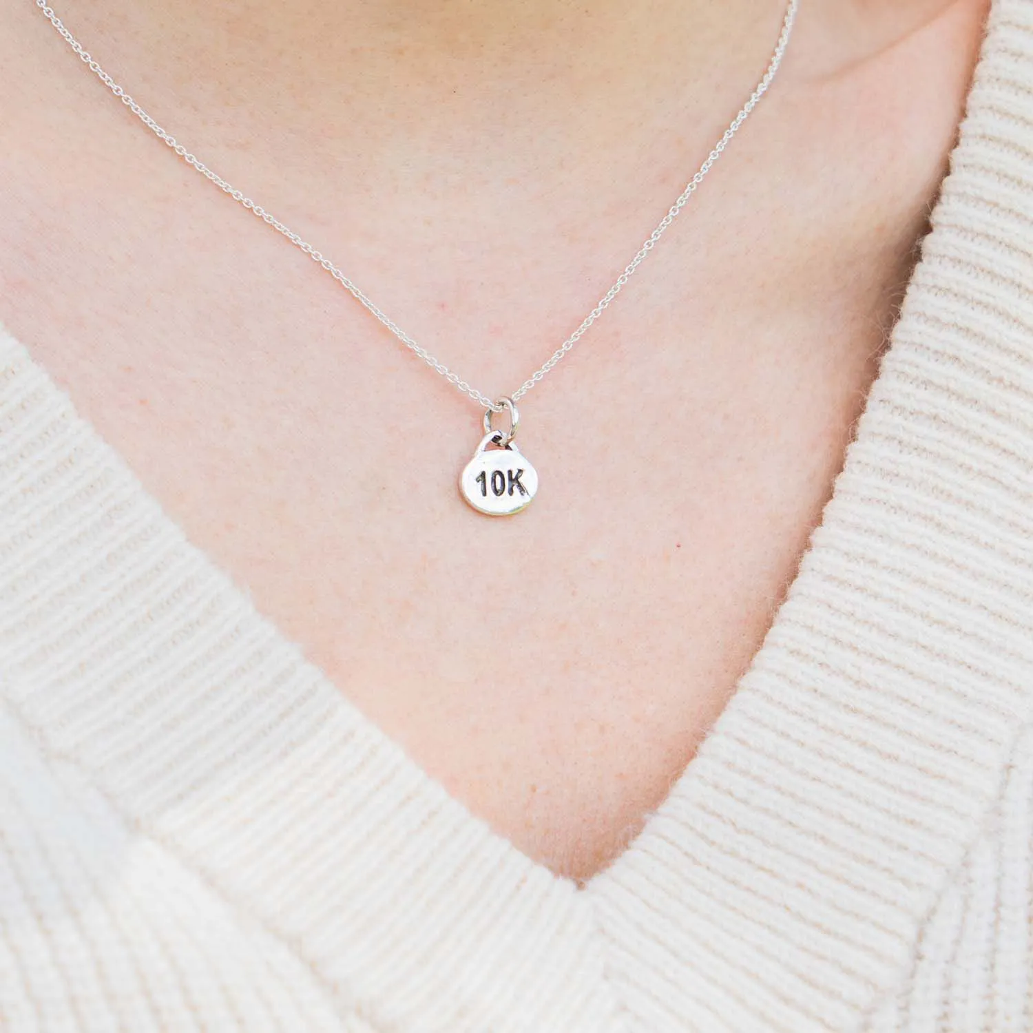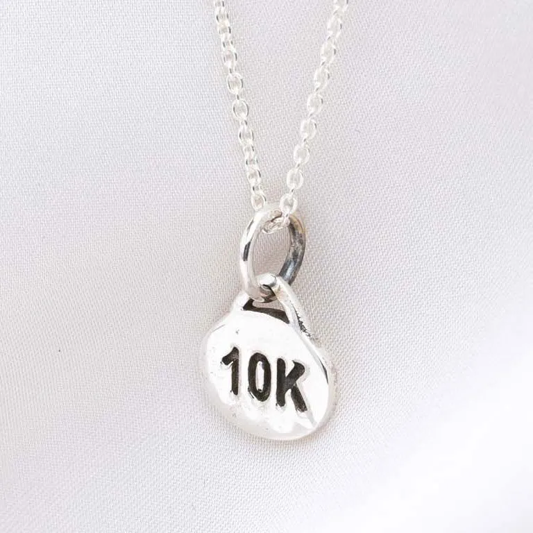 Our 10K sterling silver necklace is designed specifically for 10K runners. This sterling 10K necklace is the perfect memento to commemorate the impressive achievement of running a 10K.