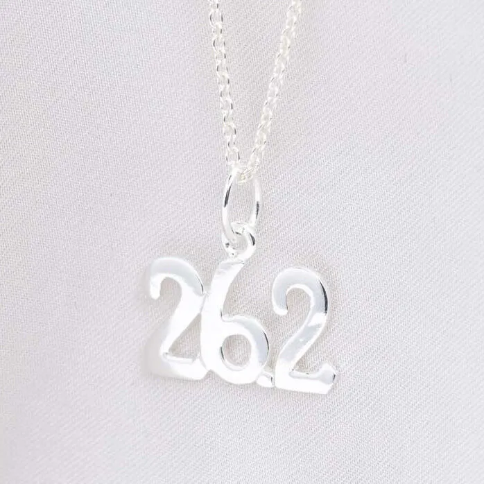 Our sterling silver marathon necklace is designed specifically for marathon runners. The charm features the 26.2 mile mark and is the perfect gift for a runner that has completed a marathon or as a motivational tool for those who are training for a marathon.