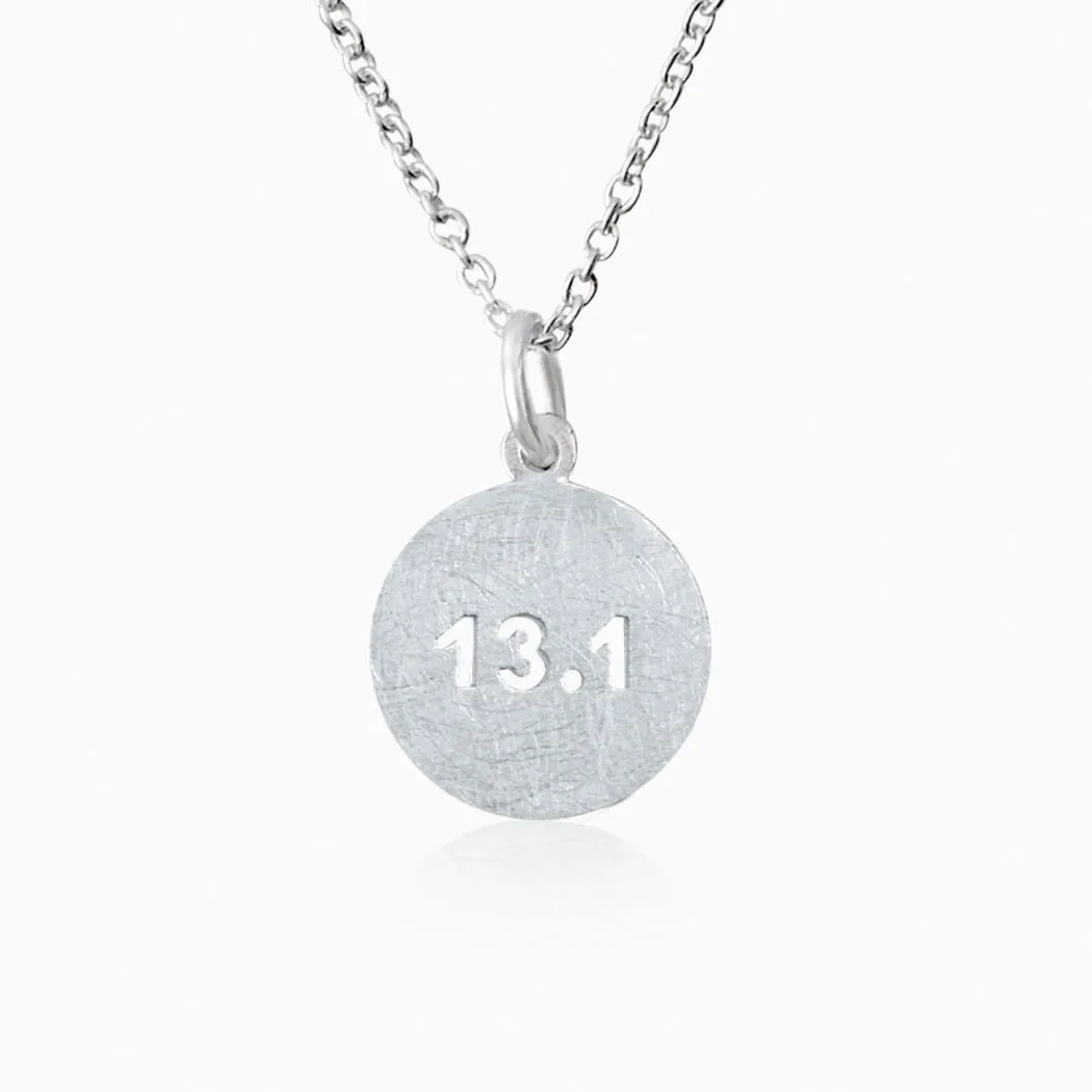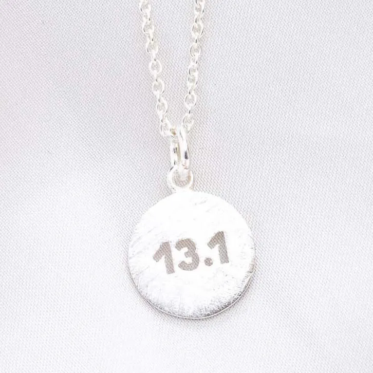 This sterling silver 13.1 half marathon necklace is the perfect accessory to celebrate this athletic accomplishment. Our artisans hand stamp the intricate detail onto this 13.1 charm to create a beautiful piece of jewelry.