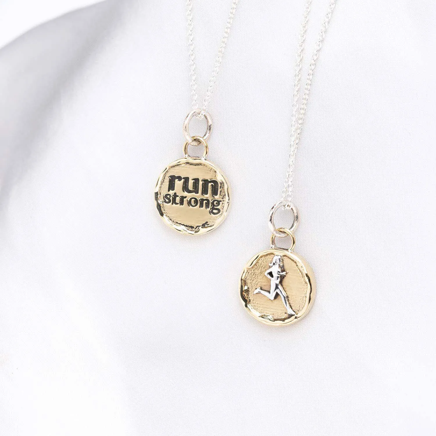 Run Strong with this sterling silver necklace with a reversible brass charm is a must-have for runner girls! It’s not just a piece of jewelry, but a symbol of hard work and dedication. Perfect for active lifestyles, it’s made of high-quality, hypoallergenic, and tarnish-resistant materials. Give it as a gift to your favorite runner and inspire them on their journey!