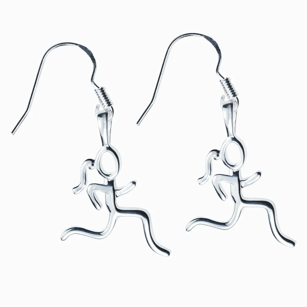 - EXCLUSIVE DESIGN: Sterling Silver Dangle Earrings feature a runner girl design