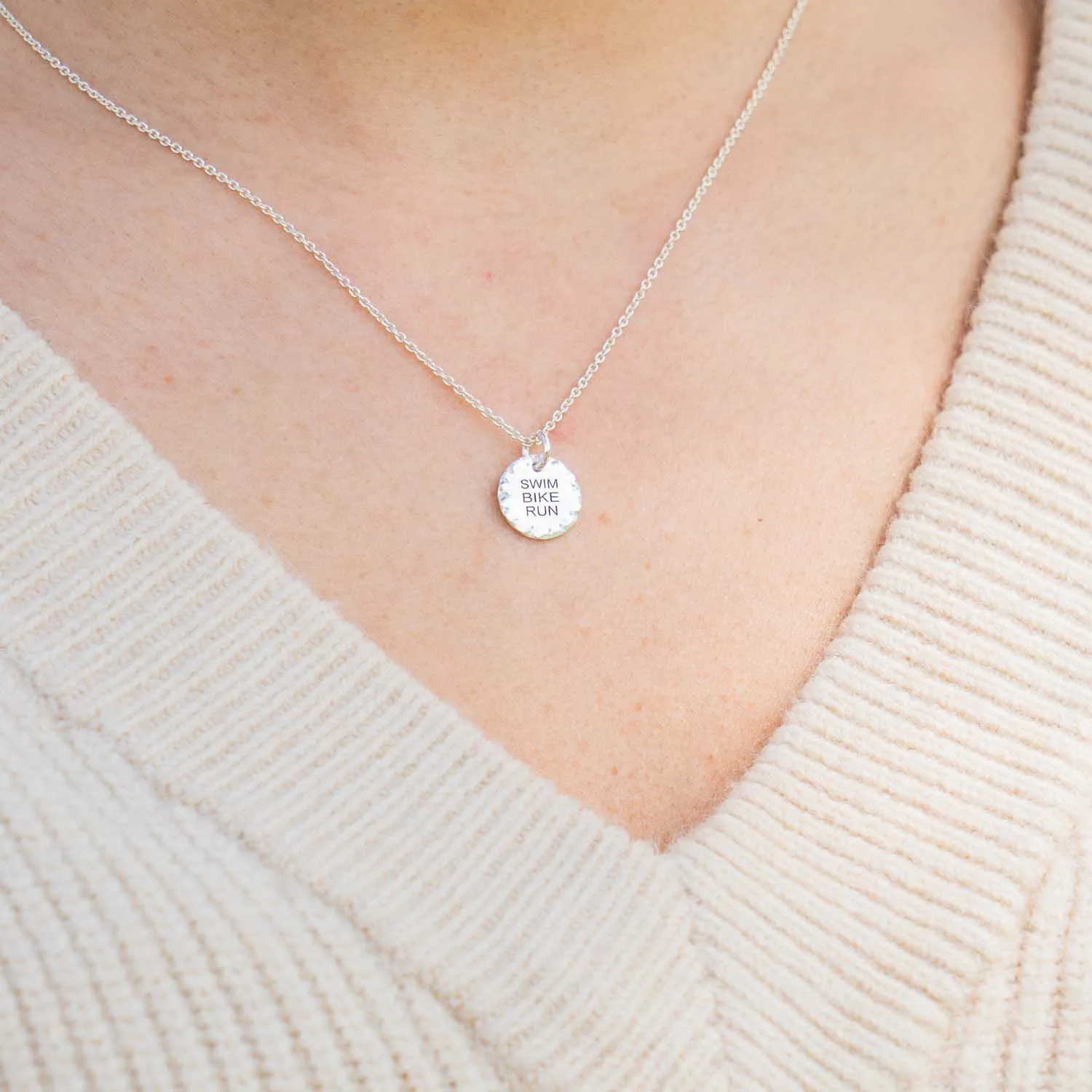 The sterling silver necklace is perfect for triathletes. Lightweight and durable, the triathlon necklace serves as a constant reminder of hard work, perseverance, and dedication. Crafted from hypoallergenic and tarnish-resistant materials, this classic necklace is perfect for daily wear and makes a unique and thoughtful gift for any triathlete.