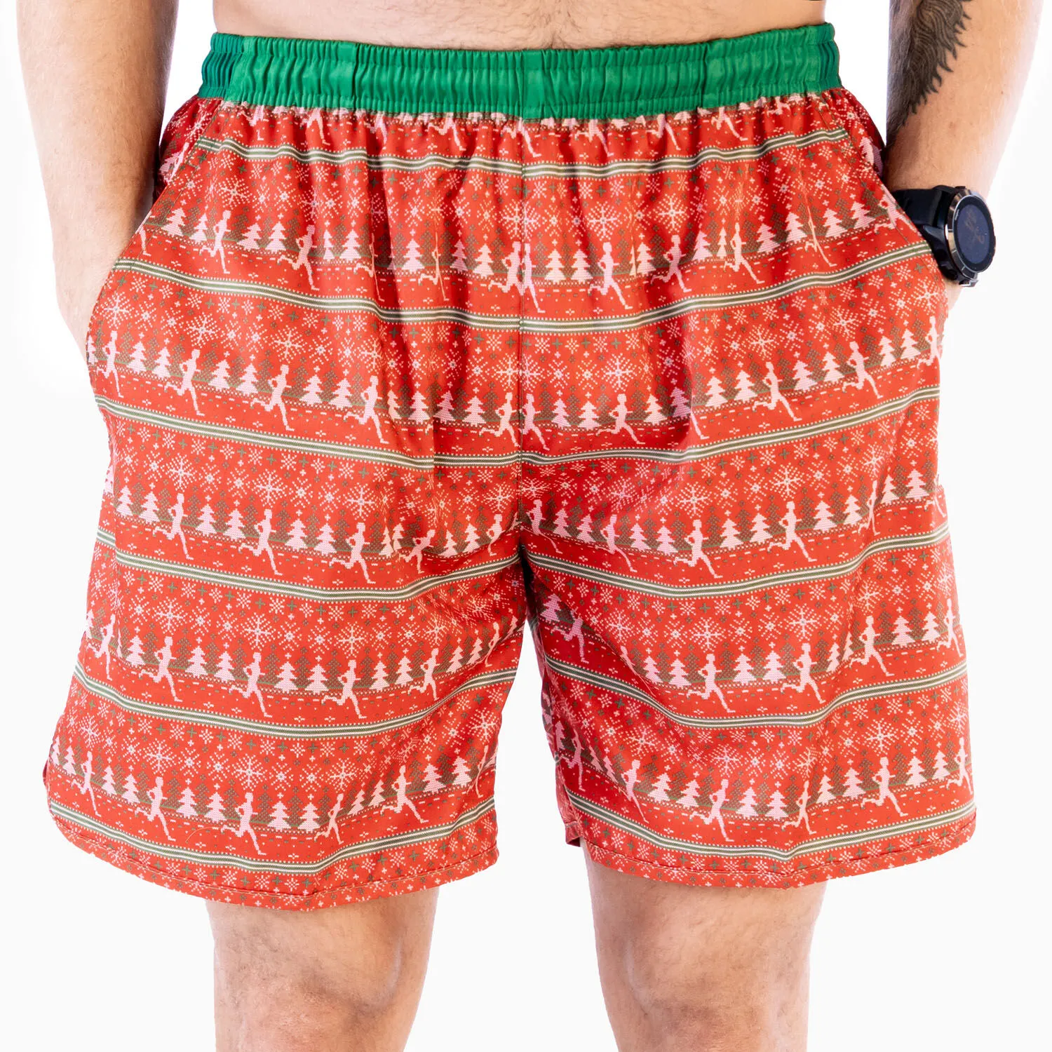 The lightweight TrueRun shorts for men feature an exclusive Christmas Sweater design perfect for your runs and errands. The moisture-wicking RunTechnology® performance polyester fabric keeps you dry and cool. The elastic waistband and adjustable internal drawstring offer a personalized fit and the super soft brief liner delivers ultimate comfort on a long run. The TrueRun shorts are also equipped with pockets on each side, as well as an additional zippered pocket on the back to securely hold your essentials. These stylish Christmas themed shorts will quickly become your go-to pair for any and all activities.