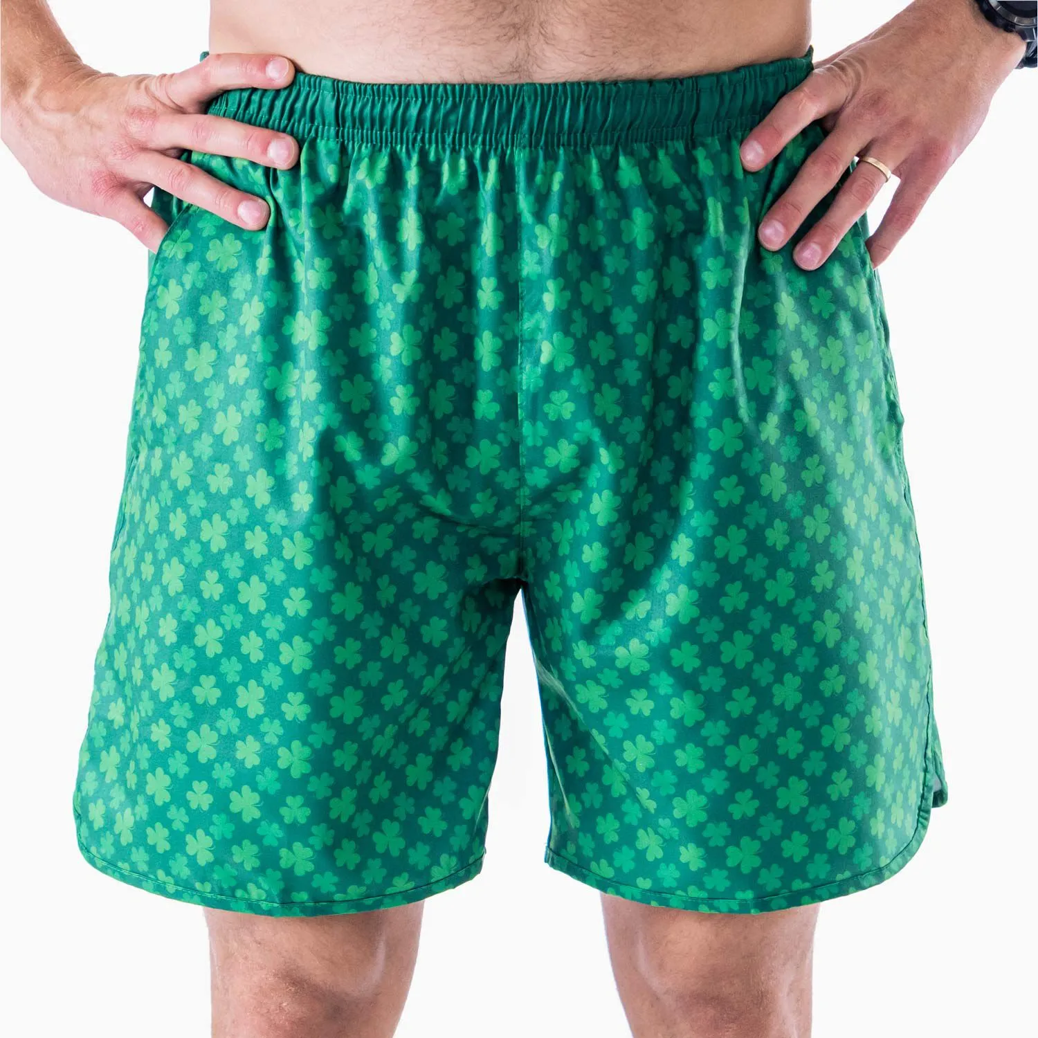 The lightweight TrueRun shorts for men feature an exclusive Lucky Runner design perfect for your runs and errands. The moisture-wicking RunTechnology® performance polyester fabric keeps you dry and cool. The elastic waistband and adjustable internal drawstring offer a personalized fit and the super soft brief liner delivers ultimate comfort on a long run. The TrueRun shorts are also equipped with pockets on each side, as well as an additional zippered pocket on the back to securely hold your essentials. These stylish shorts will quickly become your go-to pair for any and all activities.
