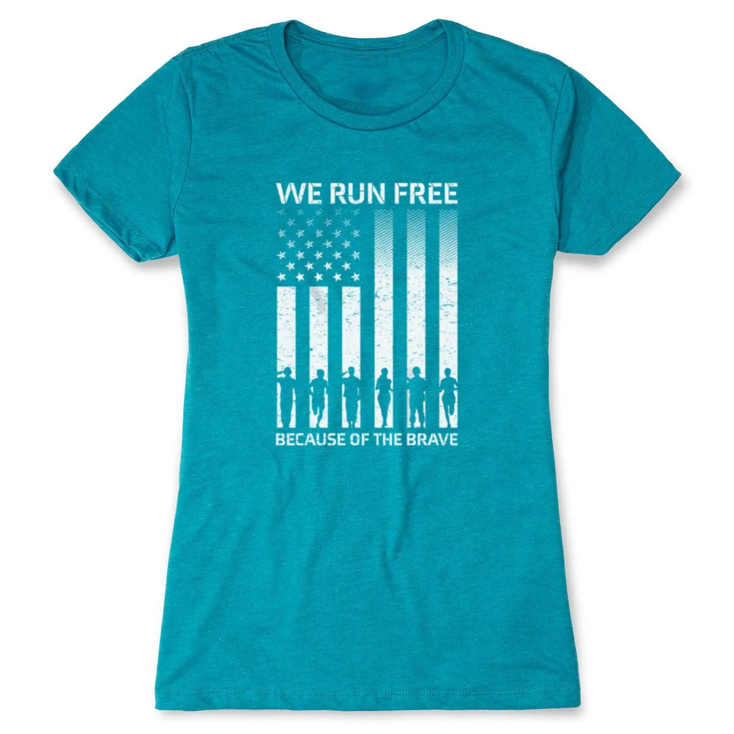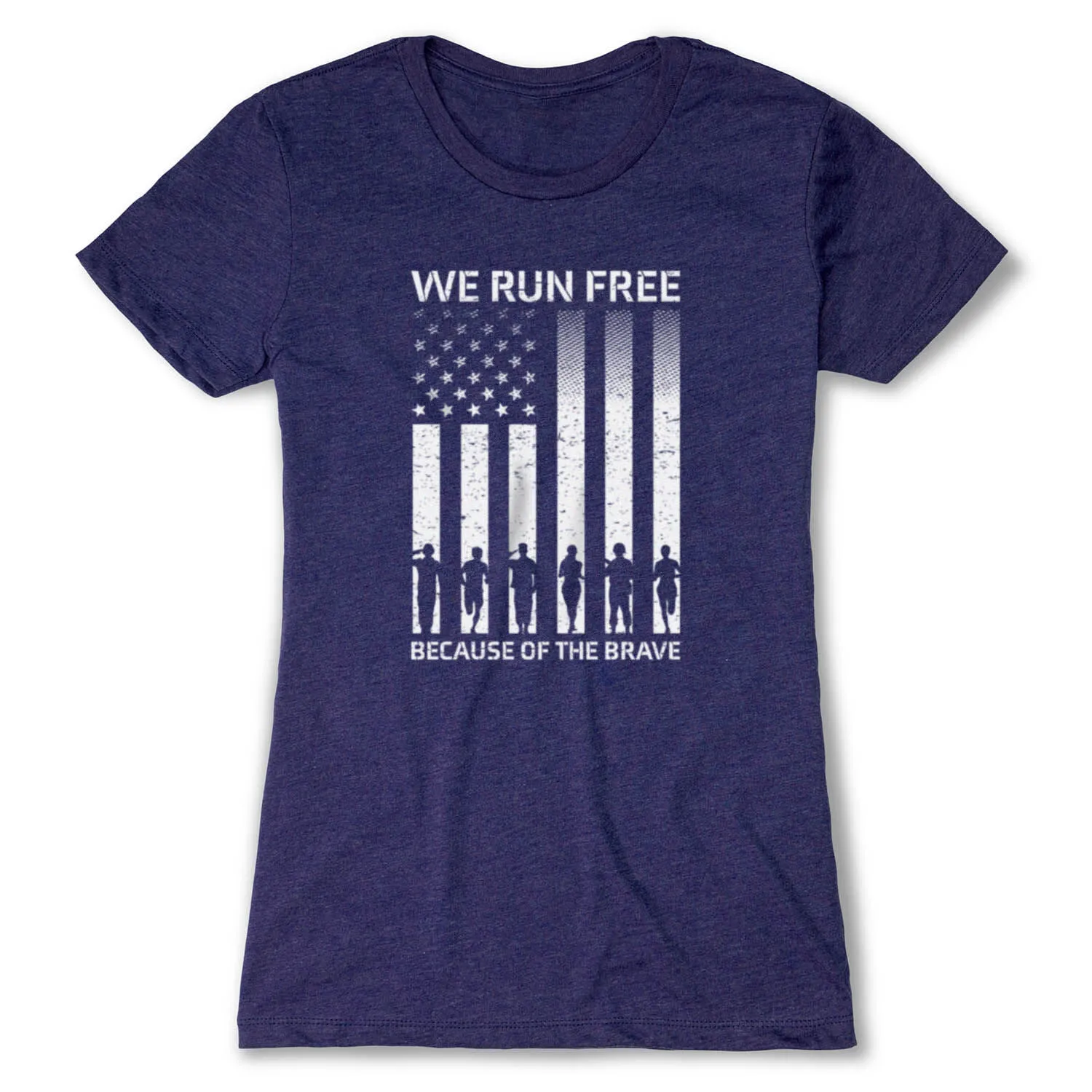 This Because of the Brave short sleeve tee features a distinctive design that celebrates both patriotism and running. Its slim fit is made from soft, lightweight material with a slightly heathered texture. The tee can be paired with any bottom, whether it’s leggings, jeans, or shorts. This tee is perfect for everyday wear and special patriotic occasions like Memorial Day or the 4th of July.