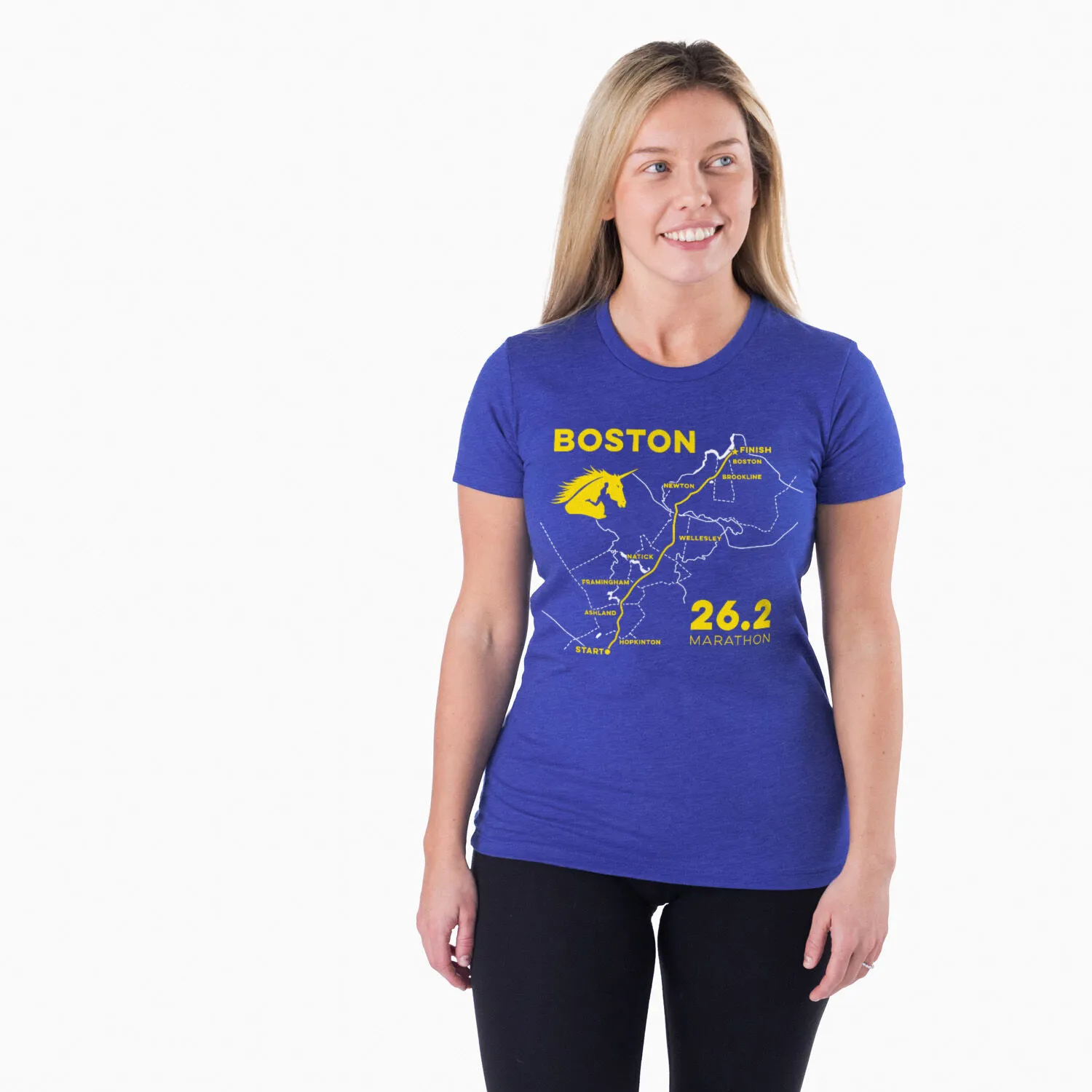 Show off your Boston running pride in our short sleeve tee. The slim-fitting tee is made from soft, lightweight, and slightly heathered material. Our everyday tee looks great when paired with any choice of bottoms from leggings and jeans to shorts. This stylish short sleeve tee is perfect for everyday wear and an ideal running gift for any occasion.