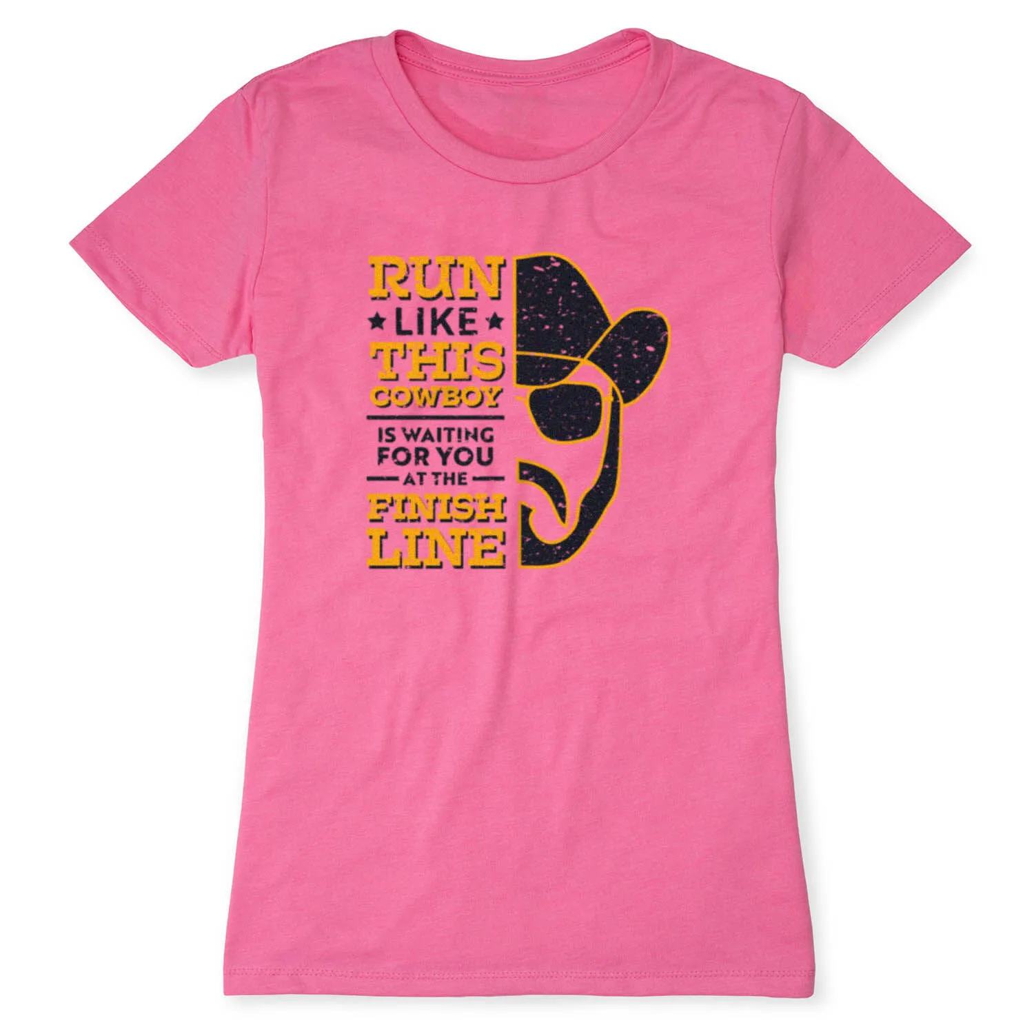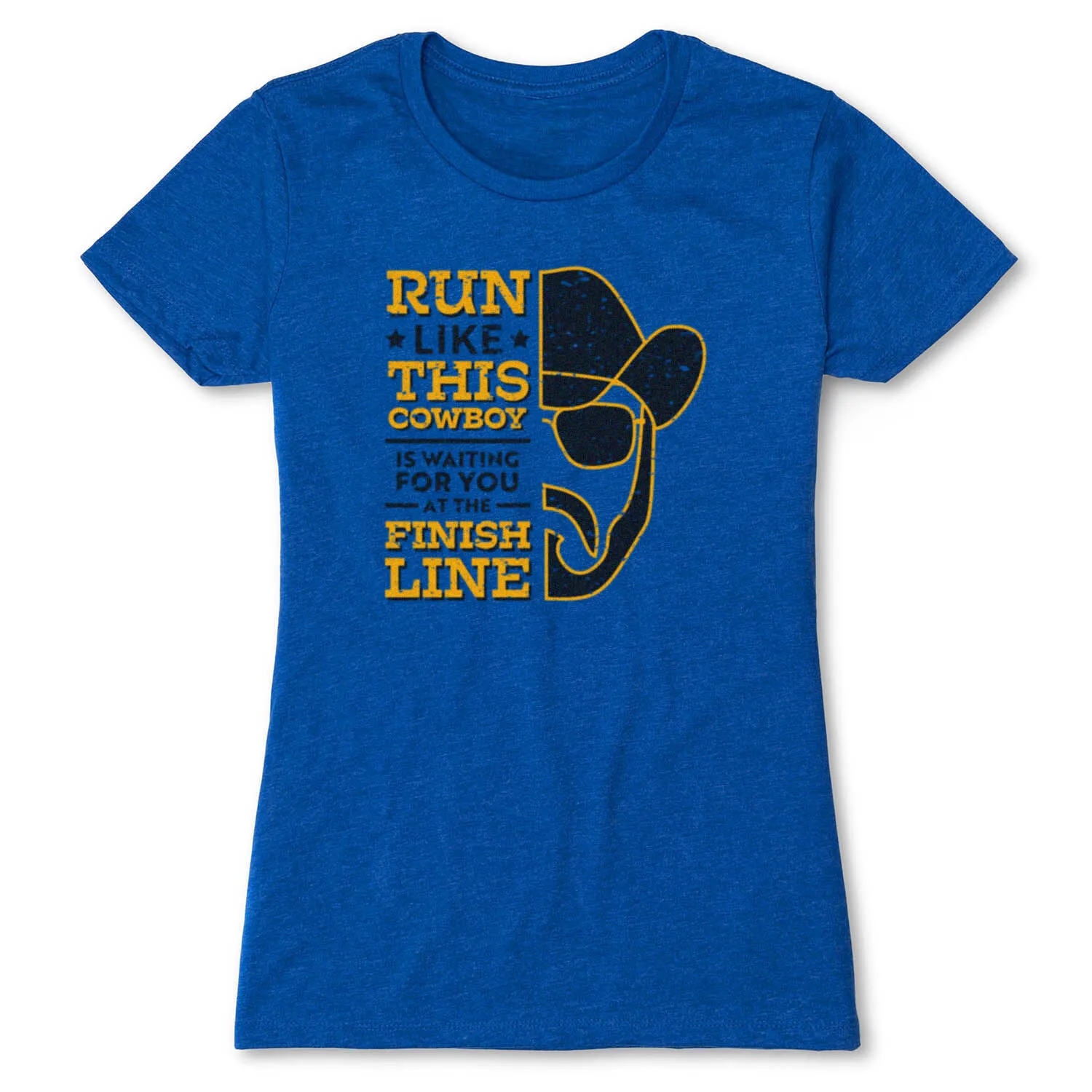Show off your cowboy pride in our short sleeve tee featuring our exclusive Finish Line Cowboy design. The slim-fitting tee is made from soft, lightweight, and slightly heathered material. Our everyday tee looks great when paired with any choice of bottoms from leggings and jeans to shorts. This stylish short sleeve tee is perfect for everyday wear and an ideal running gift for any occasion.