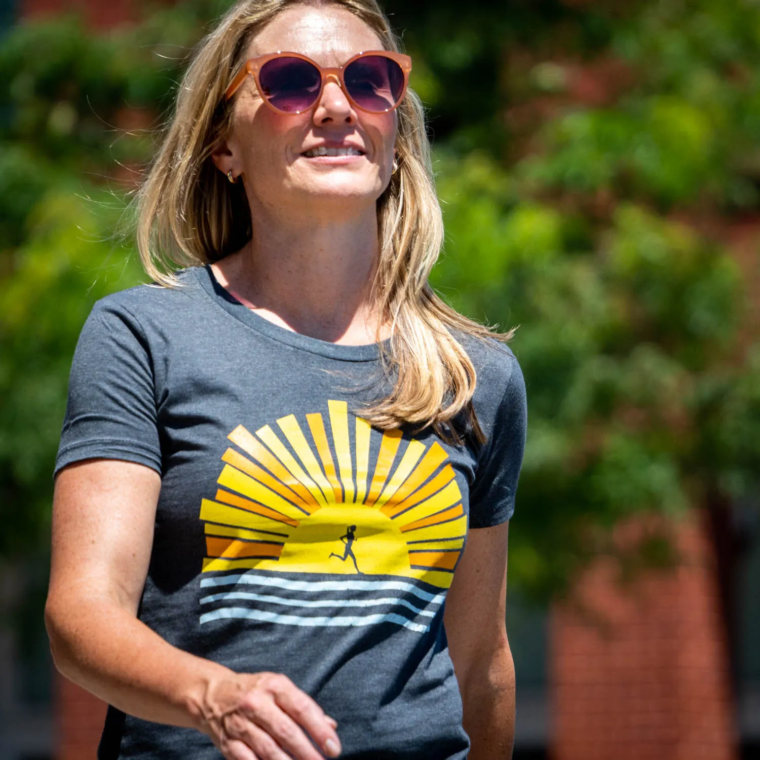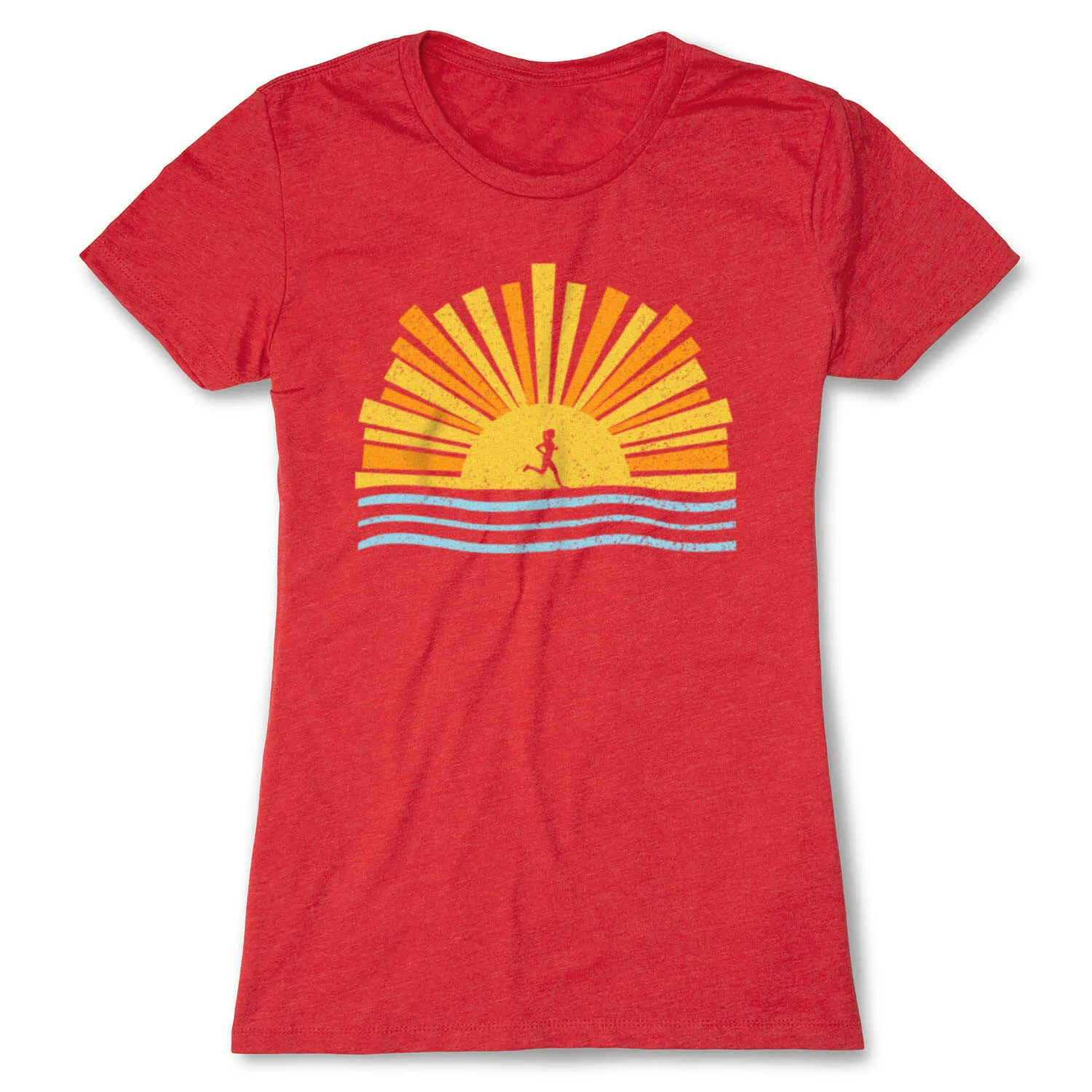 Show off your runner pride in our short sleeve tee featuring a one-of-a-kind Here Comes The Sun design. The slim-fitting tee is made from soft, lightweight, and slightly heathered material. Our everyday tee looks great when paired with any choice of bottoms from leggings and jeans to shorts. This stylish short sleeve tee is perfect for everyday wear and an ideal running gift for any occasion. Enjoy your sunset runs in the most comfortable tee for runners.