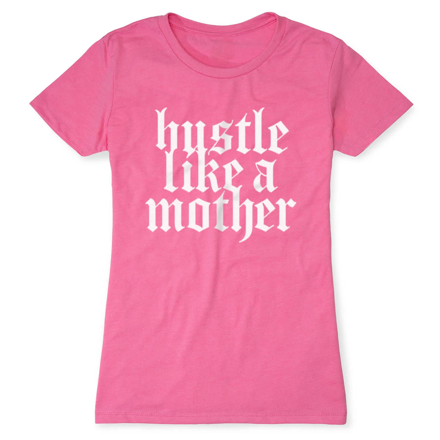 Show off your mom pride in our short sleeve tee featuring our exclusive Hustle Like a Mother design. The slim-fitting tee is made from soft, lightweight, and slightly heathered material. Our everyday tee looks great when paired with any choice of bottoms from leggings and jeans to shorts. This stylish short sleeve tee is perfect for everyday wear and an ideal running gift for any runner mom.