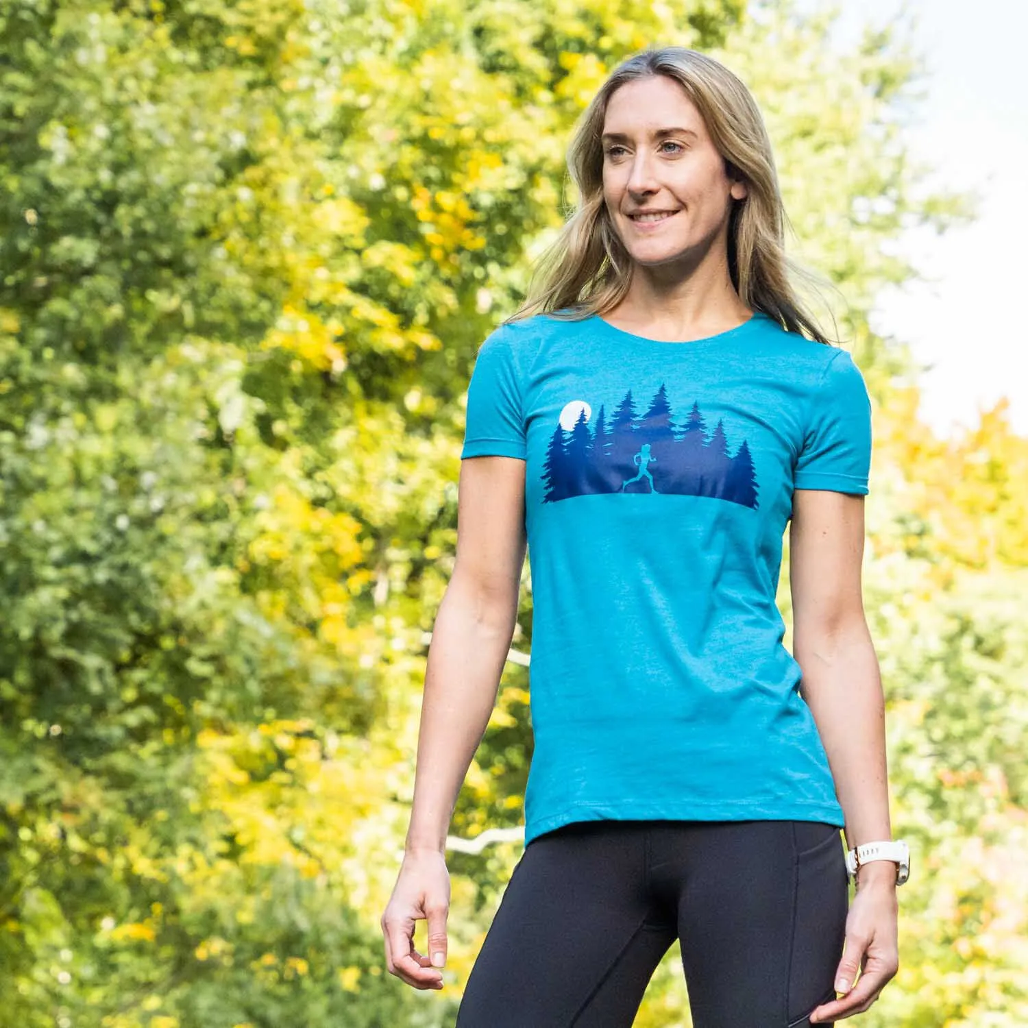 Show off your runner girl pride in our short sleeve tee featuring our exclusive Moonlit Run design. The slim-fitting tee is made from soft, lightweight, and slightly heathered material. Our everyday tee looks great when paired with any choice of bottoms from leggings and jeans to shorts. This stylish short sleeve tee is perfect for everyday wear and an ideal running gift for any occasion.