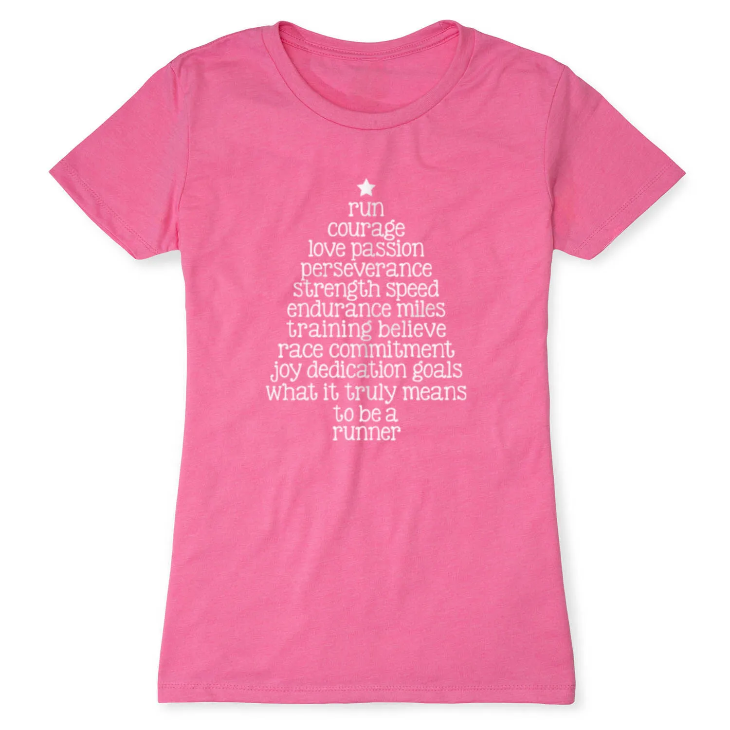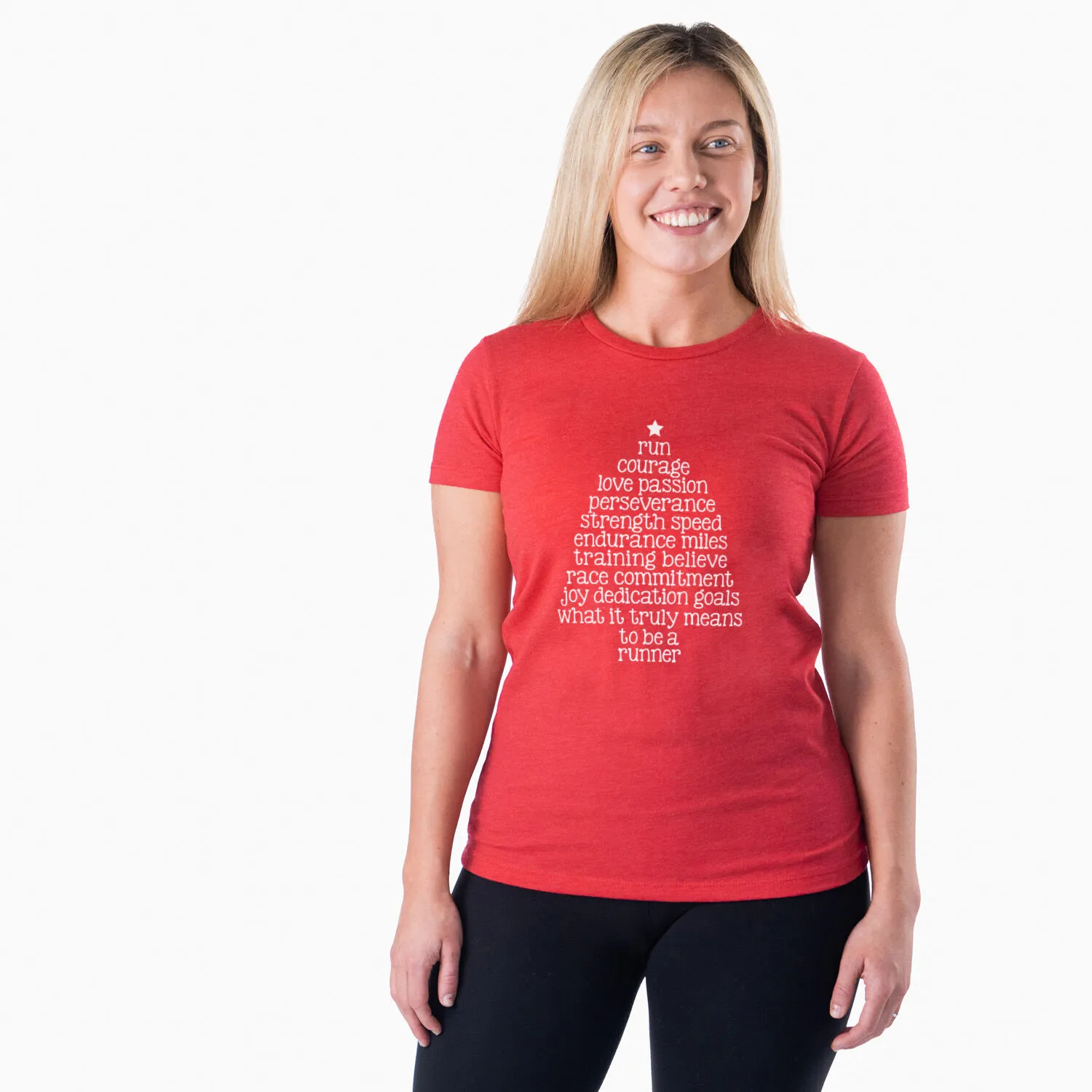 Get in the holiday spirit in our short sleeve everyday tee featuring a one-of-a-kind Christmas design inspired by running. The slim-fitting tee is made from soft, lightweight, and slightly heathered material. Our everyday tee looks great when paired with any choice of bottoms from leggings and jeans to shorts. This stylish short sleeve tee is perfect for everyday wear and an ideal running gift for any occasion. Any runner would love this for any holiday race.