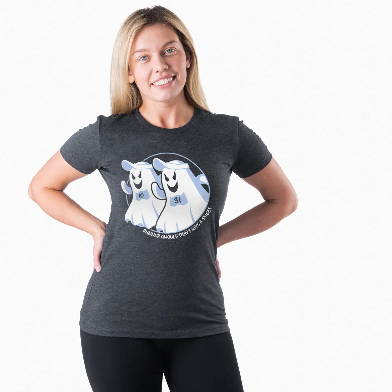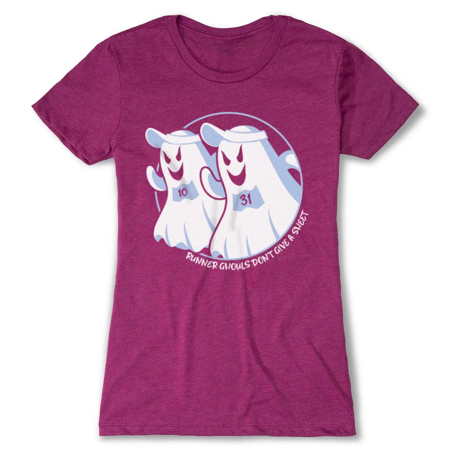 Show off your runner girl pride in our short sleeve tee featuring our exclusive Runner Ghouls Don’t Give A Sheet design. The slim-fitting tee is made from soft, lightweight, and slightly heathered material. Our everyday tee looks great when paired with any choice of bottoms from leggings and jeans to shorts. This stylish short sleeve tee is perfect for a Halloween celebration, everyday wear, and an ideal running gift for any occasion.