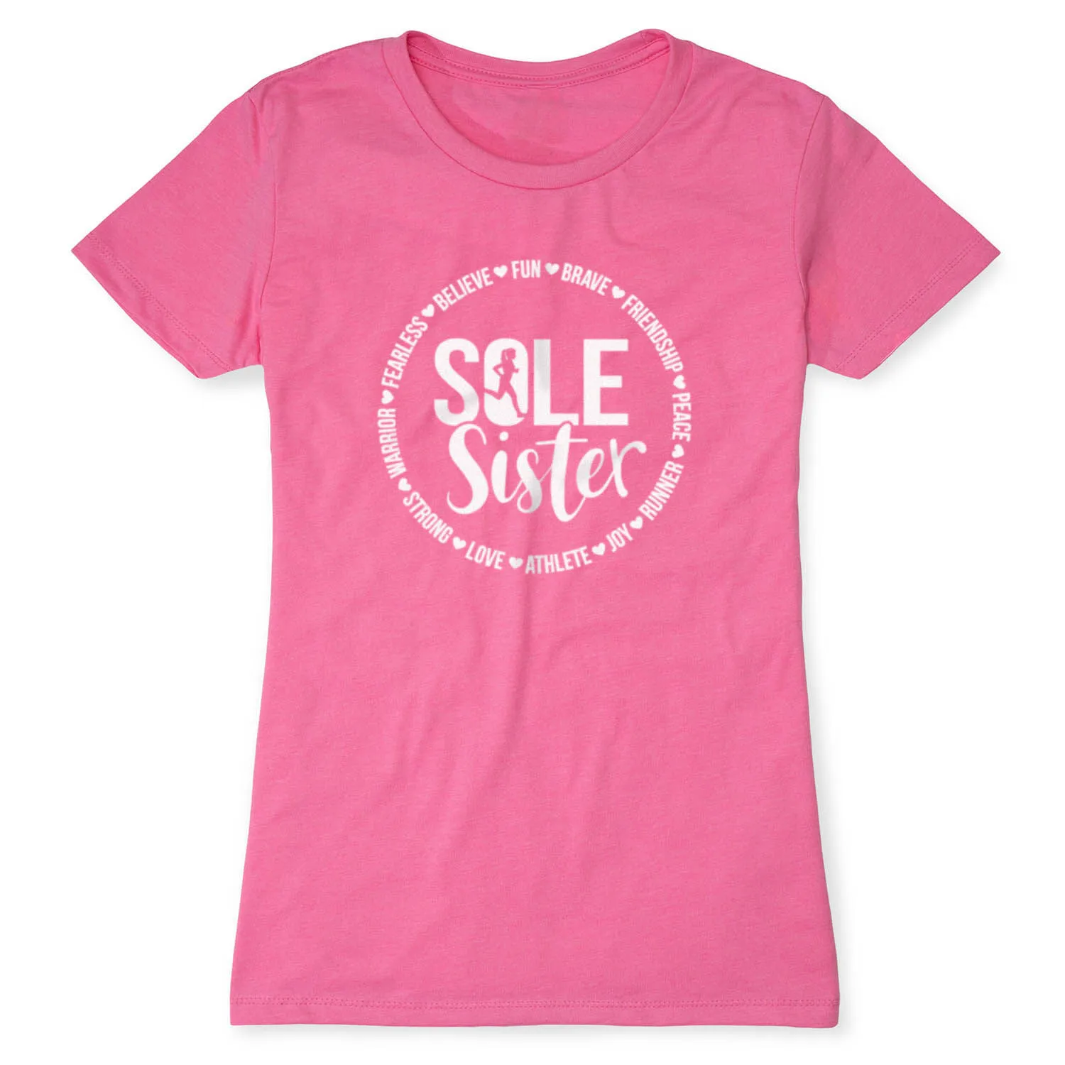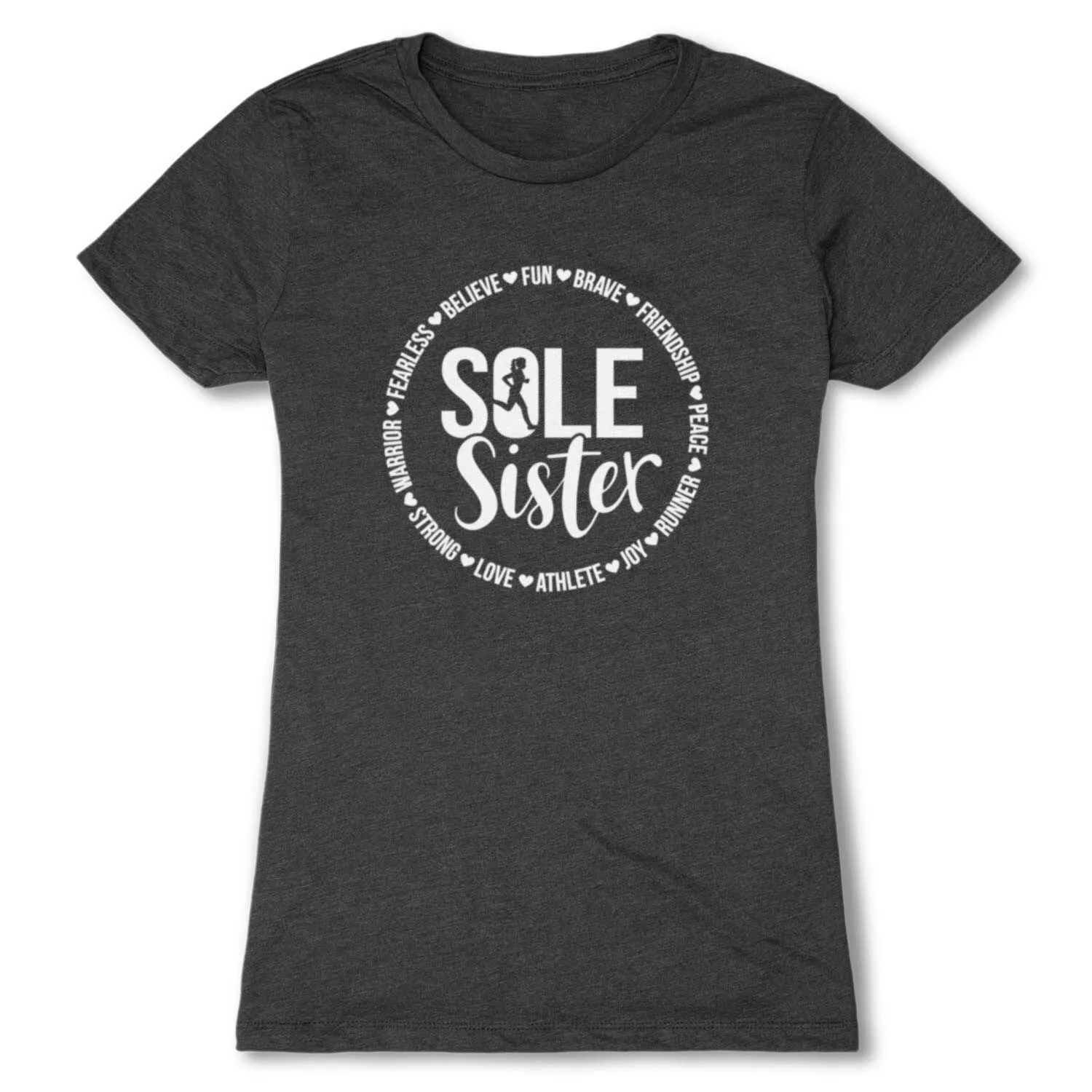 Show off your sole sister pride in our short sleeve tee. The slim-fitting tee is made from soft, lightweight, and slightly heathered material. Our everyday tee looks great when paired with any choice of bottoms from leggings and jeans to shorts. This stylish short sleeve tee is perfect for everyday wear and an ideal running gift for any occasion. Grab your best friend and run those miles together in this stylish top.
