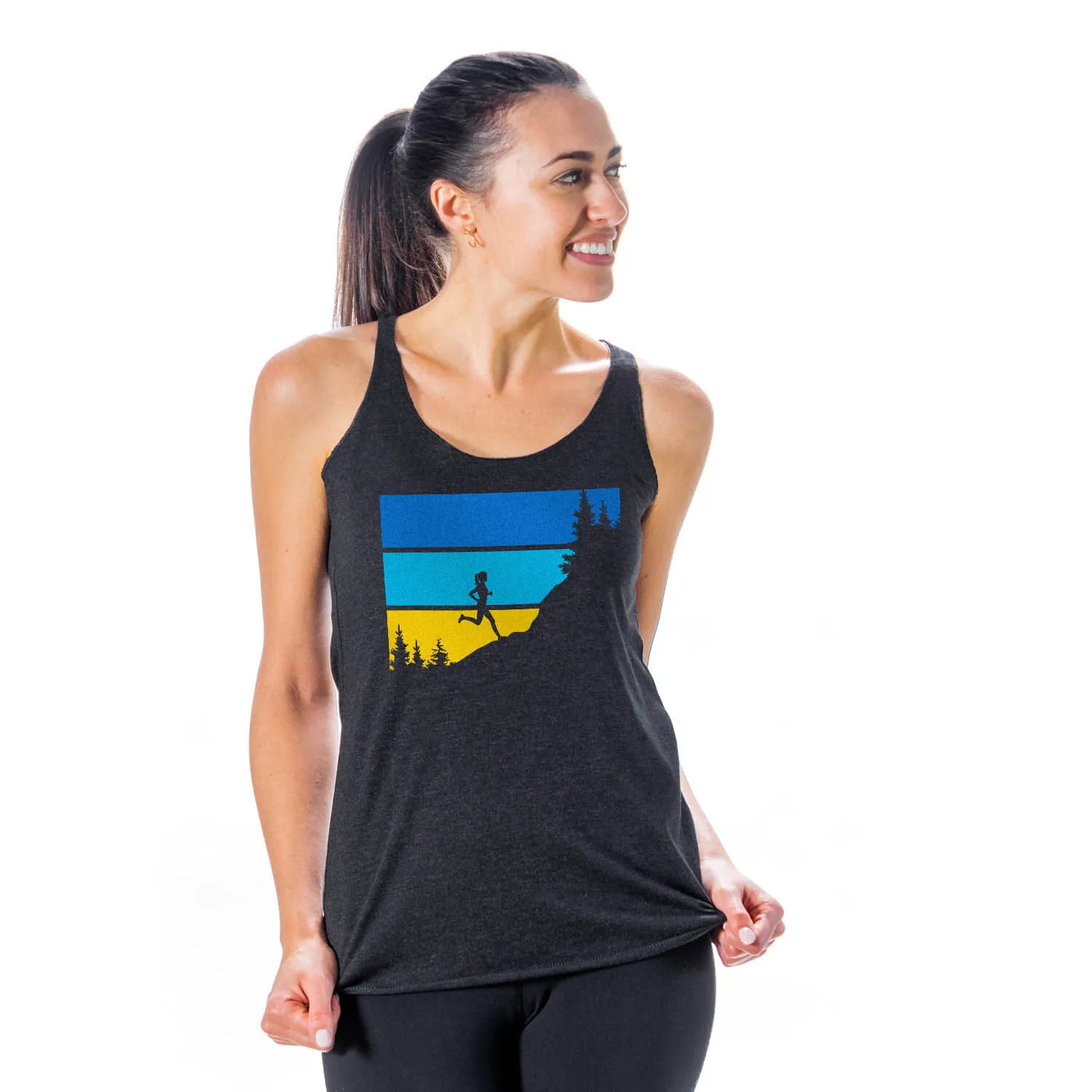 Show off your runner girl pride in our women’s everyday tank top featuring our exclusive Altitude design. Our racerback tank is made from breathable and lightweight material perfect for spring and summer activities, or as a layered outfit during colder seasons. Our unique tank top looks great when paired with any choice of bottoms from leggings and athletic tights to jeans and shorts. This stylish tank top is perfect for everyday wear and an ideal running gift for any occasion.
