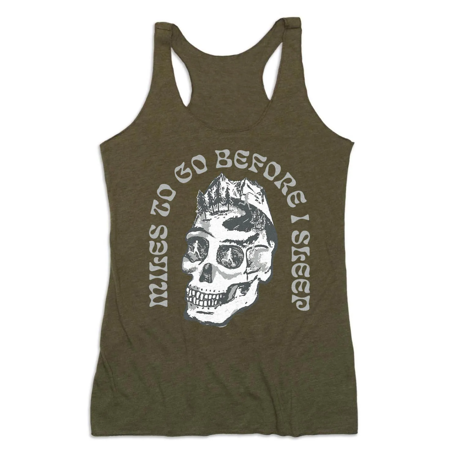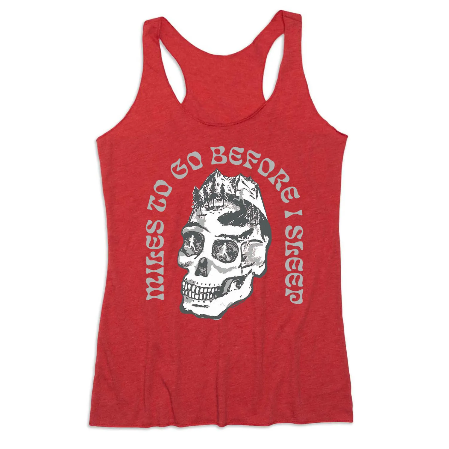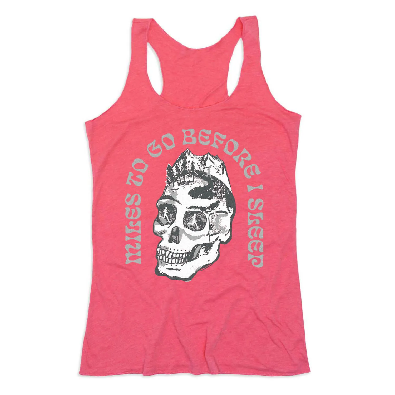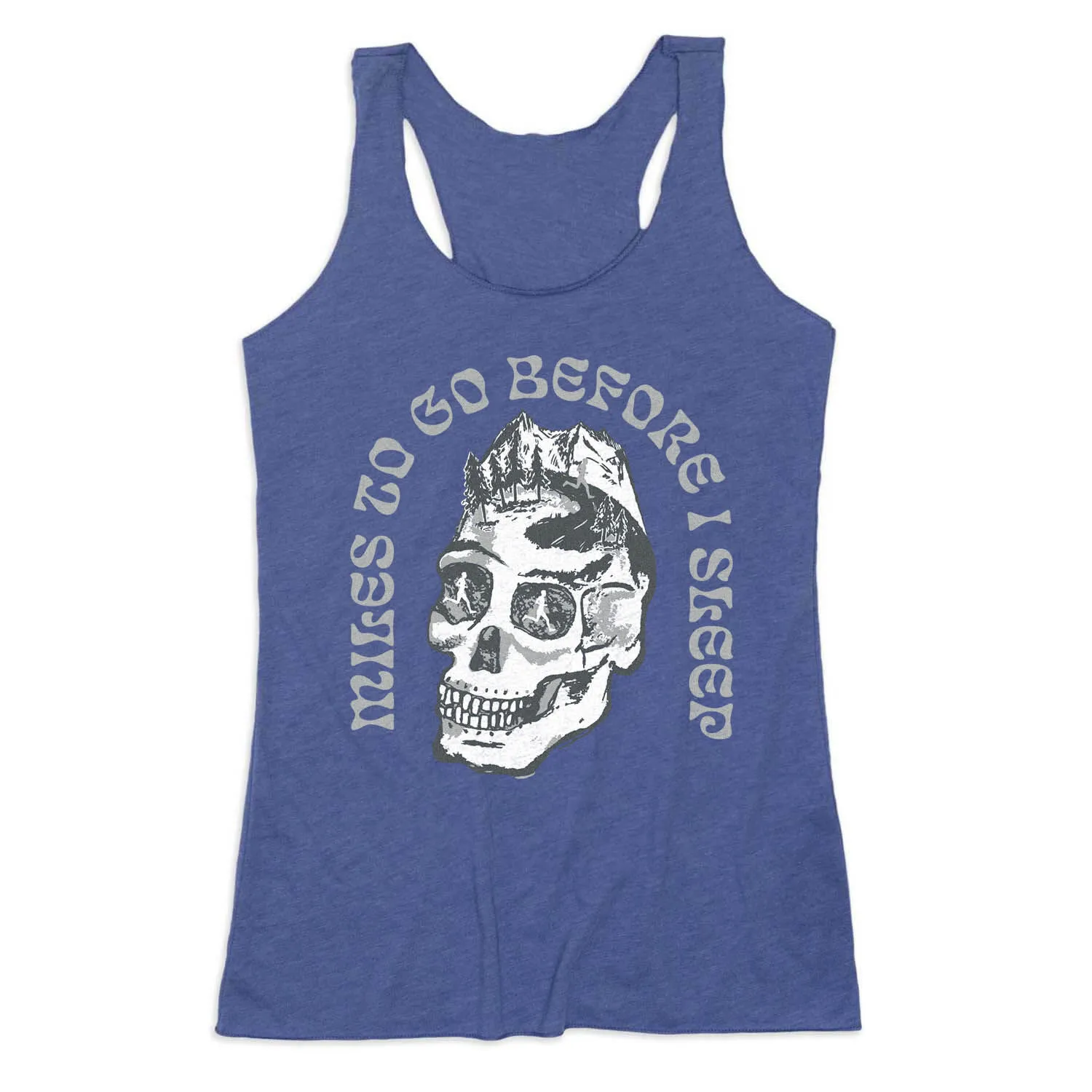 Show off your runner pride in our women’s everyday tank top featuring our exclusive Miles To Go Before I Sleep Skull design. Our racerback tank is made from breathable and lightweight material perfect for spring and summer activities, or as a layered outfit during colder seasons. Our unique tank top looks great when paired with any choice of bottoms from leggings and athletic tights to jeans and shorts. This stylish tank top is perfect for everyday wear and an ideal running gift for any occasion.