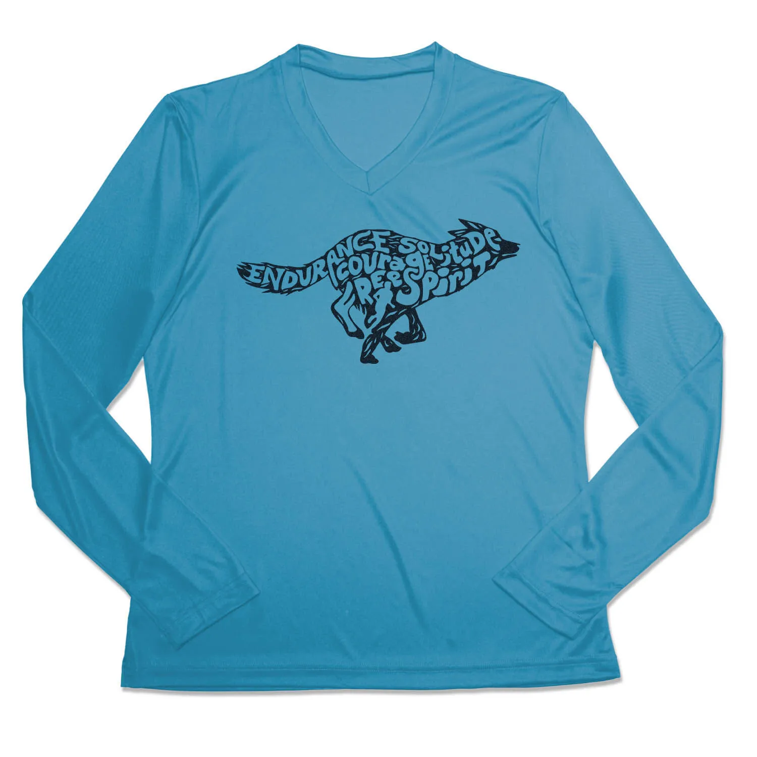 Run wild and free in our women’s long sleeve tech tee. Our V-neck performance tee is made from 100% polyester interlock to keep runners dry and cool. The long sleeve tech tee offers a comfortable and relaxed fit that looks great with any choice of bottoms from leggings and athletic tights to jeans and longs. This stylish tech tee is perfect for everyday wear and an ideal running gift for any occasion.