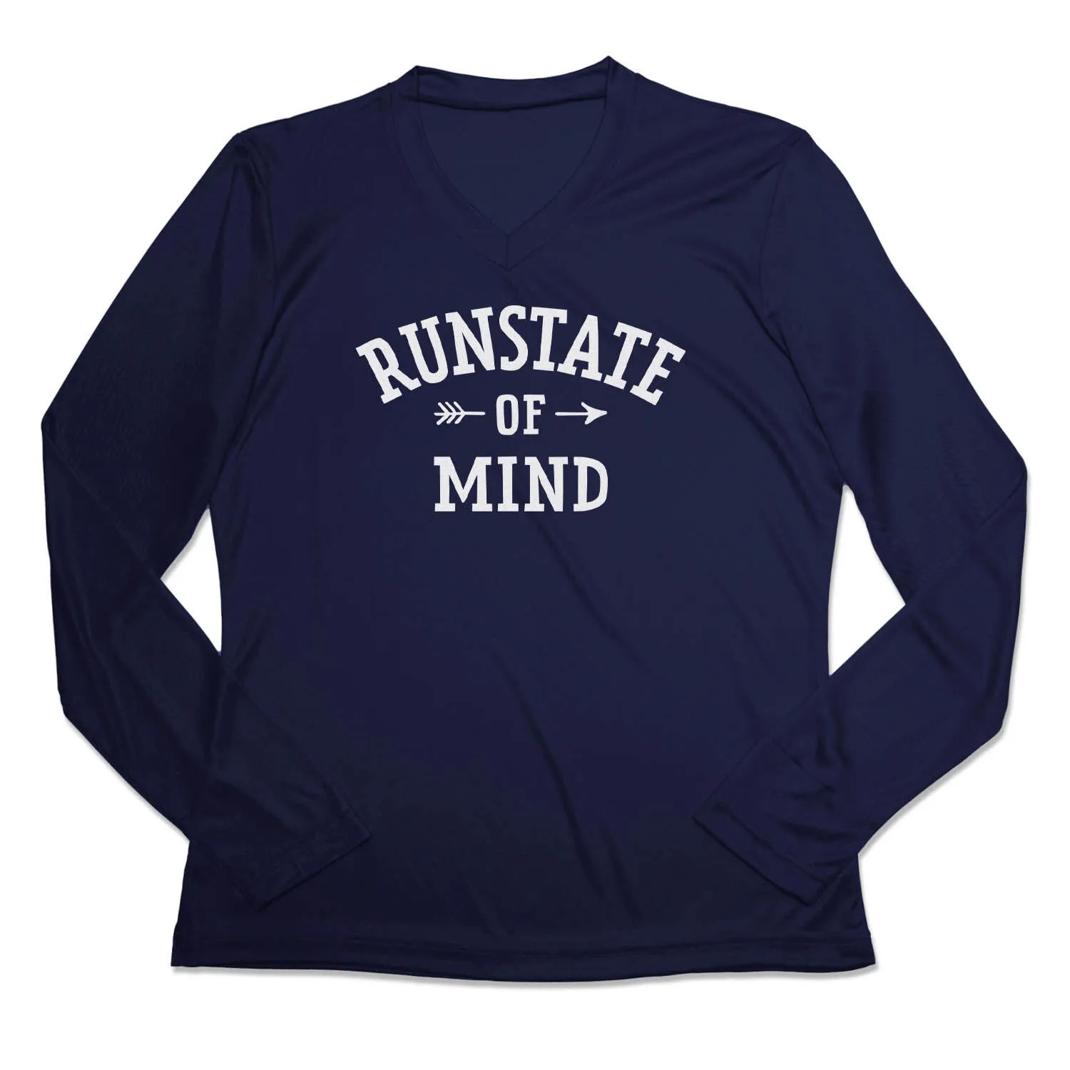 Show off your runner pride in our women’s long sleeve tech tee featuring our exclusive RunState of Mind design. Our V-neck performance tee is made from 100% polyester interlock to keep runners dry and cool. The long sleeve tech tee offers a comfortable and relaxed fit that looks great with any choice of bottoms from leggings and athletic tights to jeans and longs. This stylish tech tee is perfect for everyday wear and an ideal gift for any runner.