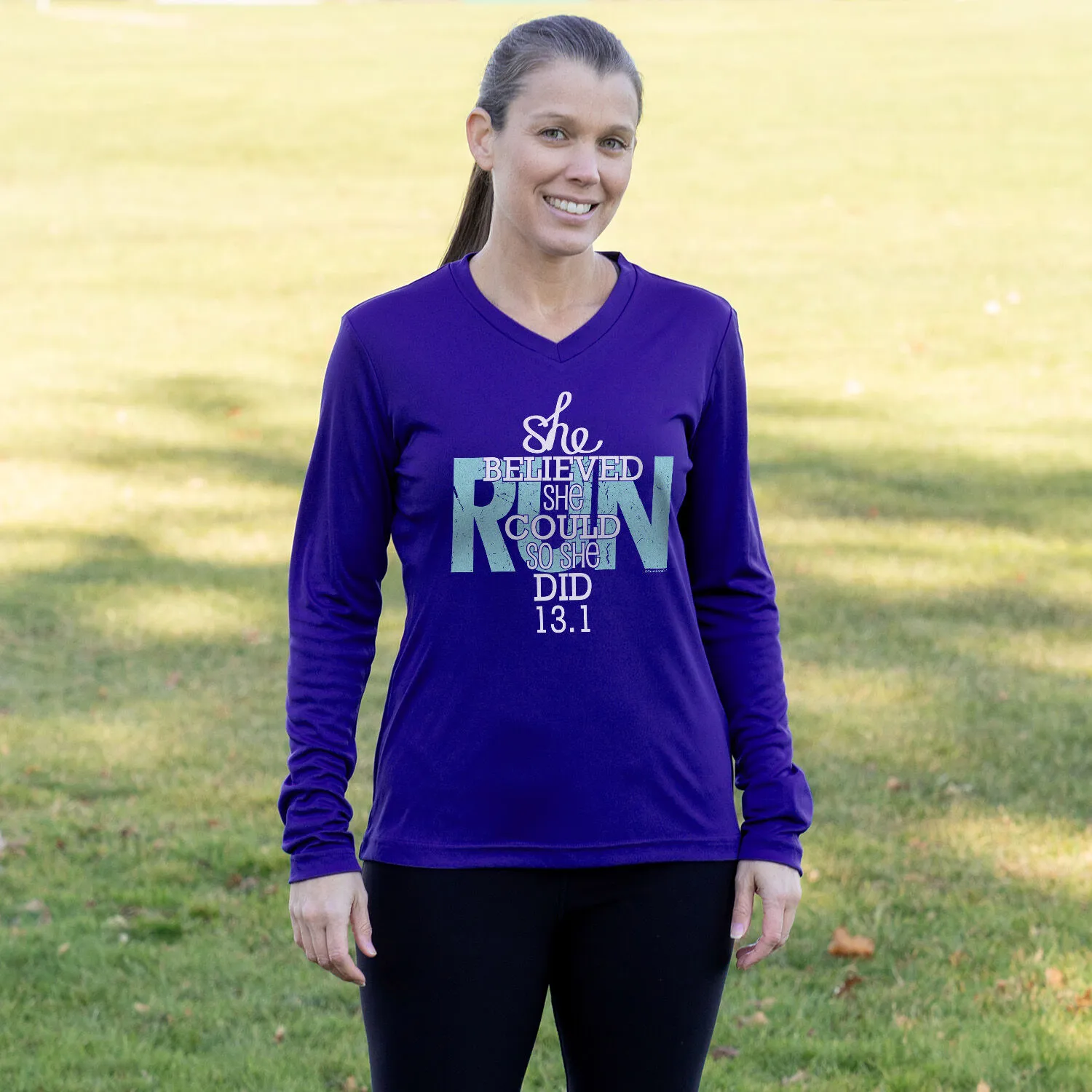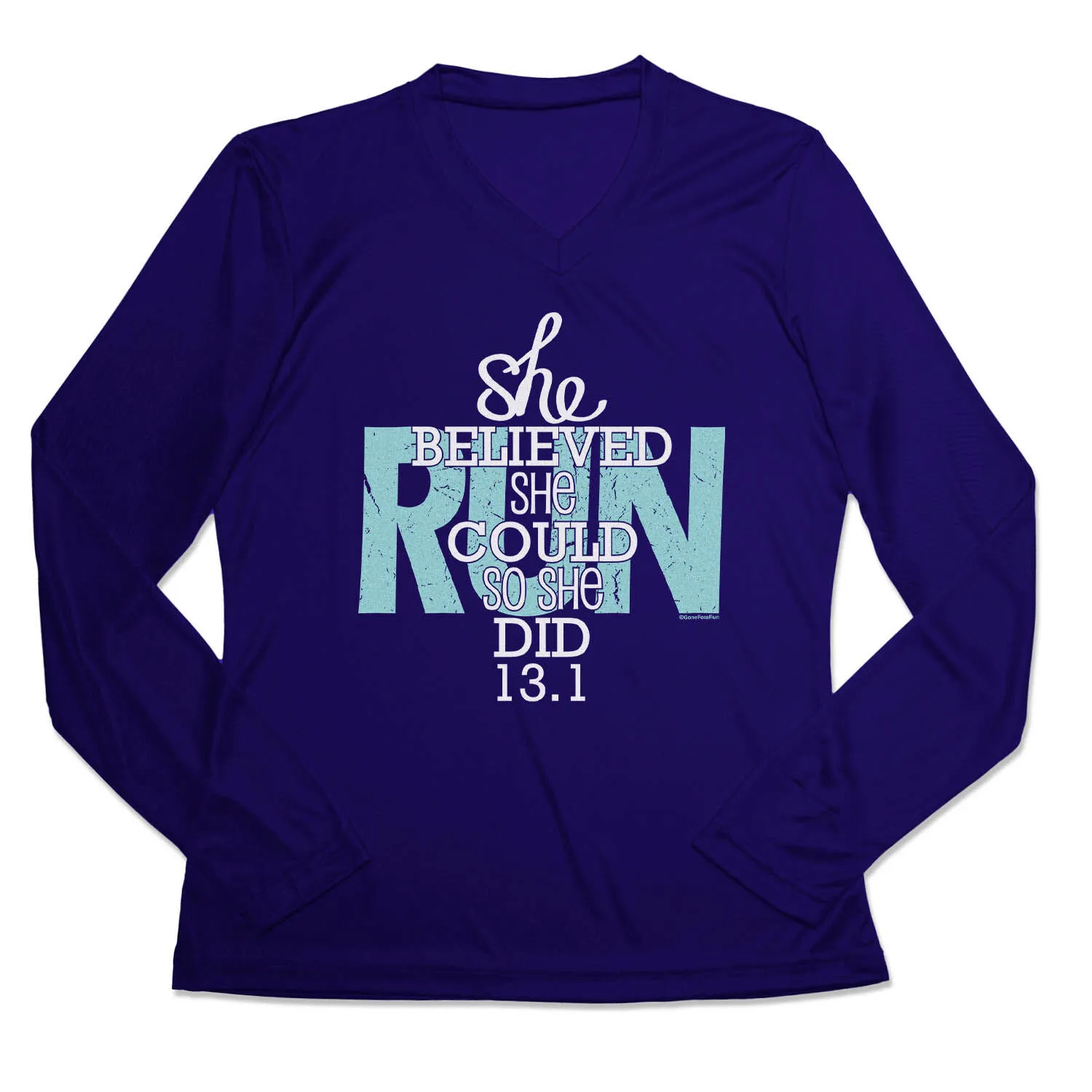 Women’s Long Sleeve Tech Tee – She Believed She Could So She Did 13.1