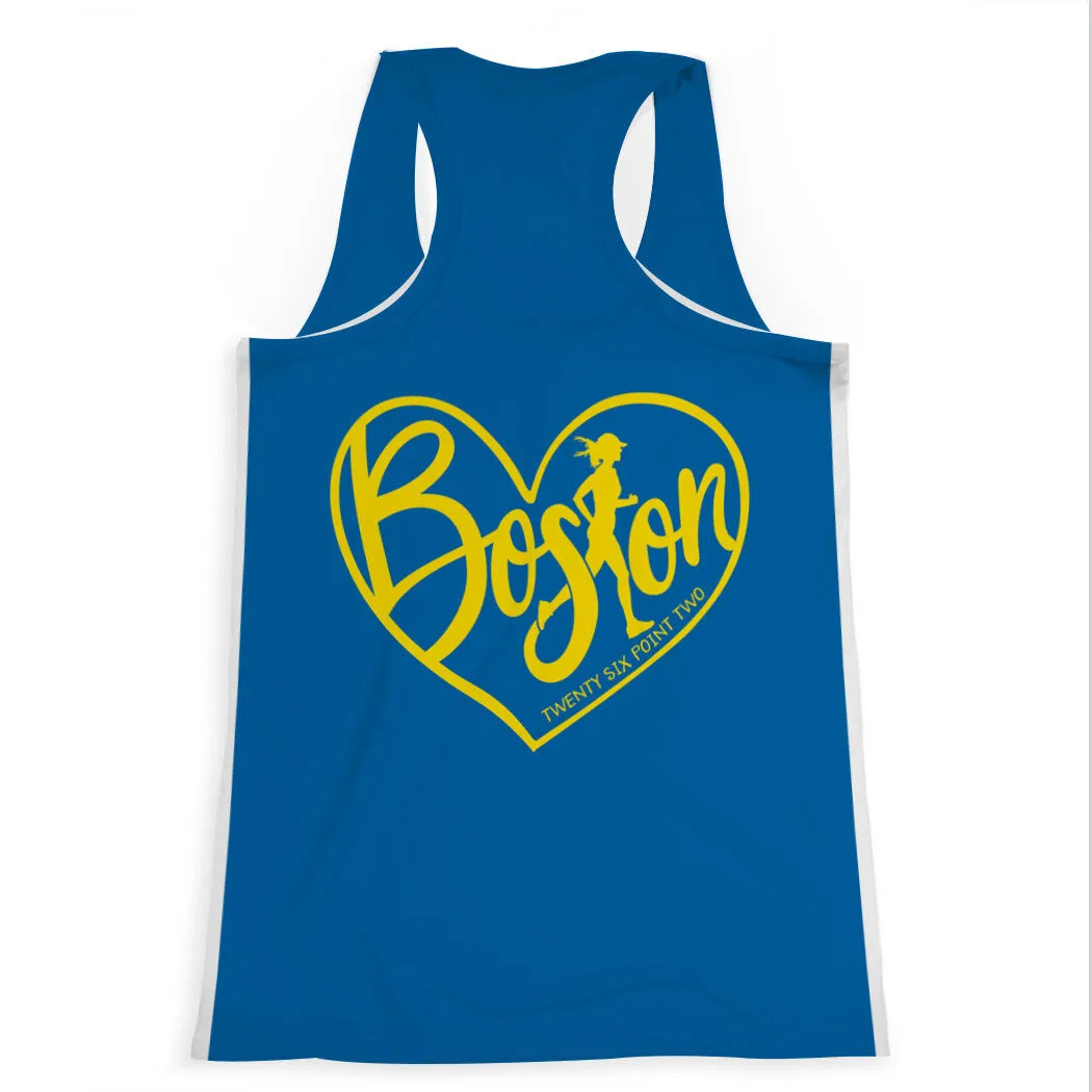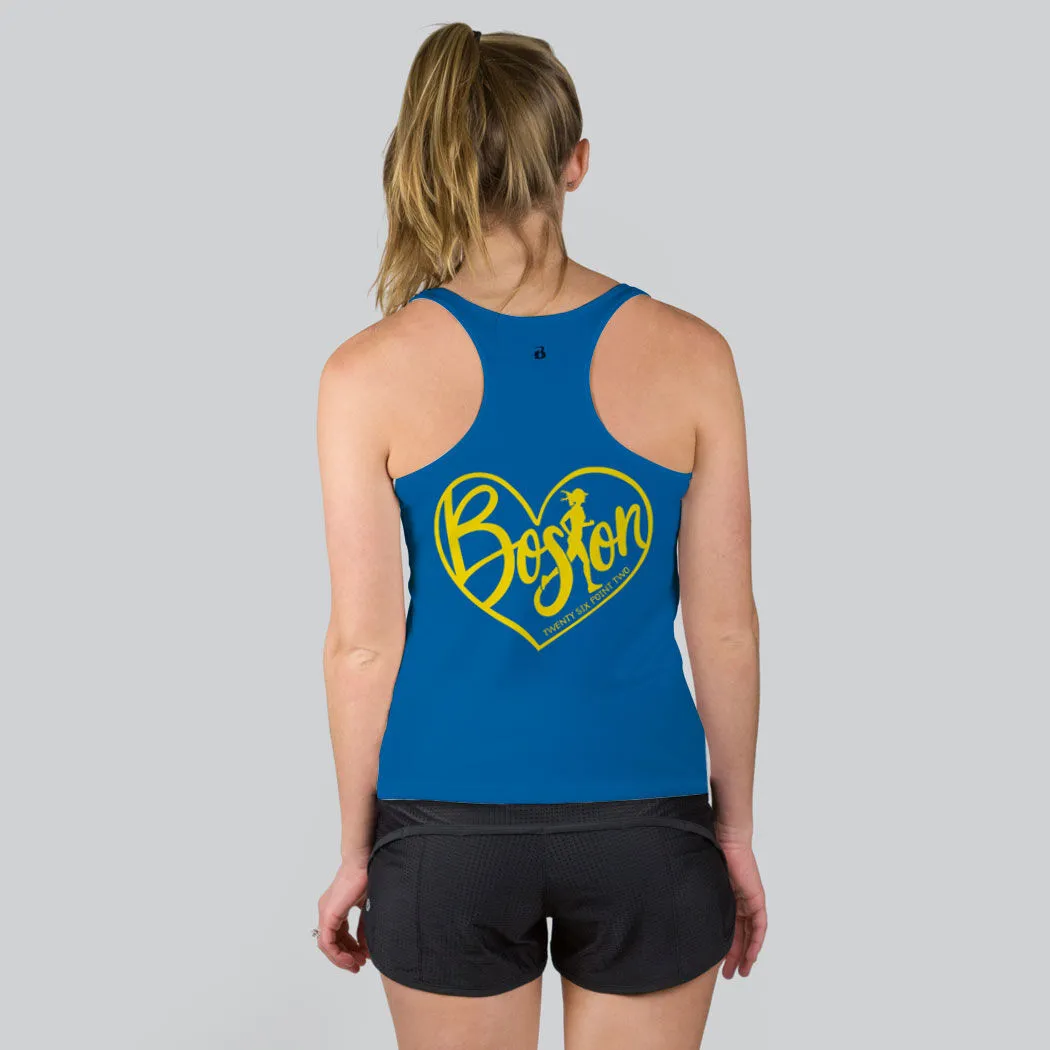 Show off your Boston pride with our Love the Run Boston 26.2 performance tank top, this is the perfect tank to train in and wear during the big race. The 100% moisture-wicking polyester microfiber fabric keeps runners cool and dry, even when it’s warm or hot, and is designed to perform, no matter how long the race may be. Be sure to run in style and stand out from the crowd with our unique design.