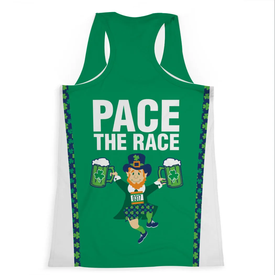Pace the race this St. Patrick’s Day with this celebrating runner leprechaun. This performance tank matches both our Lucky Runner shorts and capris. The 100% moisture-wicking polyester microfiber fabric keeps runners cool and dry, even when it’s warm or hot, and is designed to perform, no matter how long the race may be. Be sure to run in style and stand out from the crowd with our unique design.