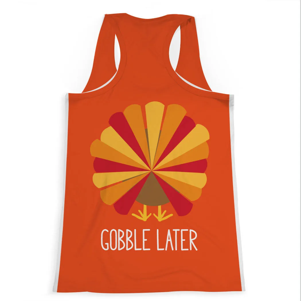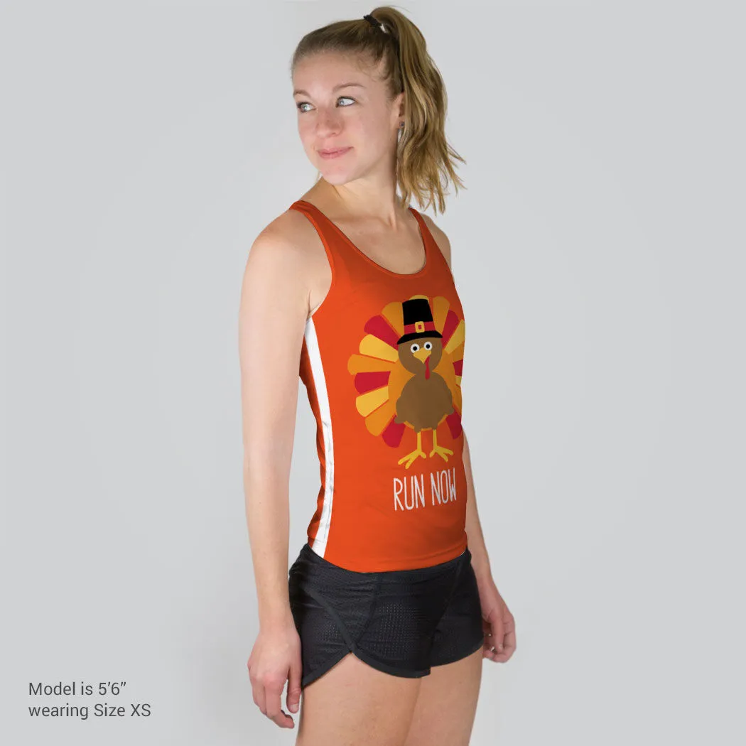 Perfect for Thanksgiving, this playful women’s performance running singlet is sure to be a favorite on race day or for everyday runs and is a great gift with a double-sided design featuring a turkey on front and those tail feathers he – and any runner – will be shaking all through the race. Designed to wick away moisture from the skin, the 100% polyester microfiber racerback singlet is made from 100% polyester microfiber that’s lightweight and breathable to keep runners cool and dry- and comfortable while running and it’s a fun running gift for a Thanksgiving race that can be worn all year round.