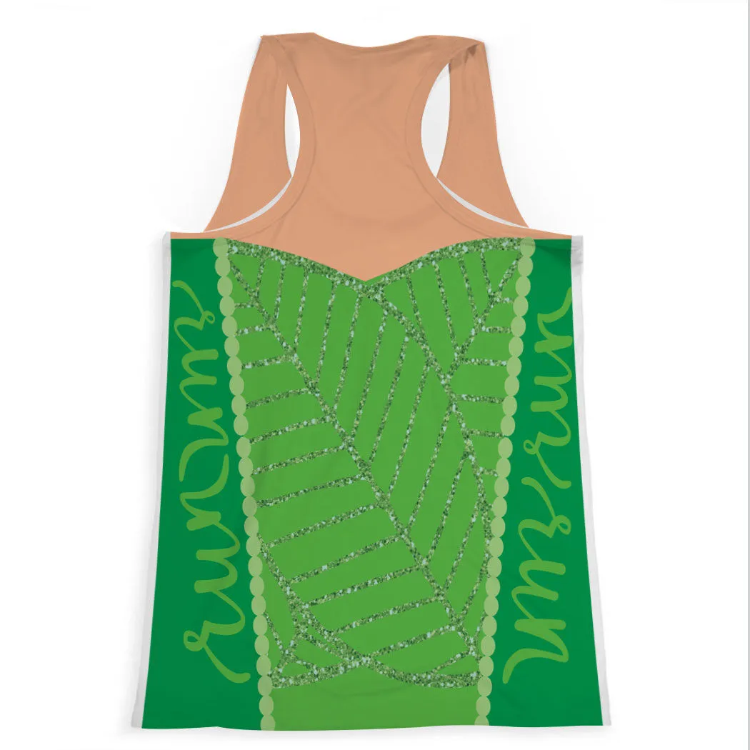Channel your inner fairy and fly to the finish line whenever running in this faux glitter, sparkling women’s performance running singlet that’s a fun and functional running gift, perfect for special races or everyday runs. The polyester microfiber keeps runners cool and dry, even when it’s warm or hot, and is designed to perform, no matter how long the race may be. The unique design appears as if it is a strapless green top covered in a silver sparkle pattern that will be accentuated as a runner’s body moves, this unique singlet is sure to stand out in any race and will be a favorite for any runner who loves all things beautiful and magical – as well as being comfortable when running.